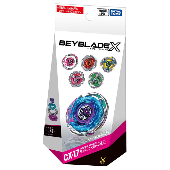 特別カラーでカスタマイズ済みの6種類のベイブレード中からいずれか1個が入っているランダムブースター。