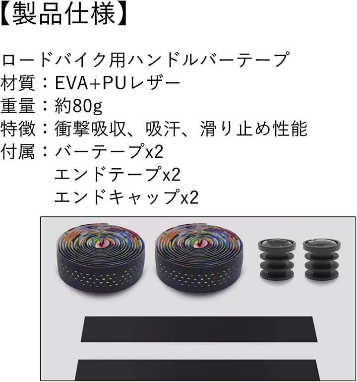 商品内容:バーテープx2本、エンドキャップx2個、エンドテープx2枚 寸法:長さ2150mm 幅30mm 厚み3.0mm 重量:80g 材質:EVA+PU