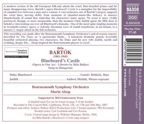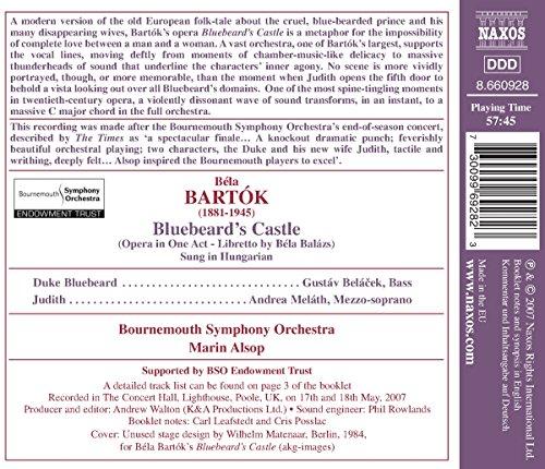 A modern version of the old European folk-tale about the cruel, blue-bearded prince and his many disappearing wives, Bart k's oper Bluebeard's Castle is a metaphor for the impossibility of complete love between a man and a woman. A vast orchestra.