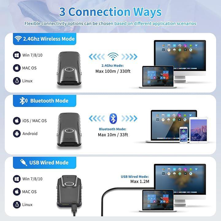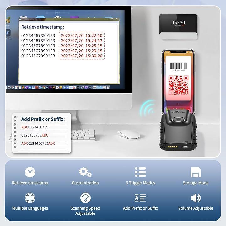 ワイヤレスBluetoothテクノロジー - NETUMバッククリップバーコードスキャナーさまざまなBluetooth対応のスマートフォン、タブレット、ノートブック、デスクトップコンピューターに簡単に接続できます。