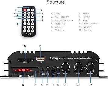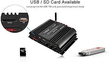 通常1-5営業日で発送:Bluetooth4.0対応 LEPY 4chコンパクトオーディオアンプ 出力45W×4ch USB/SDカード再生可 Hi-Fiステレオパワーアンプ 12V 5Aアダプター付属 LP-269S