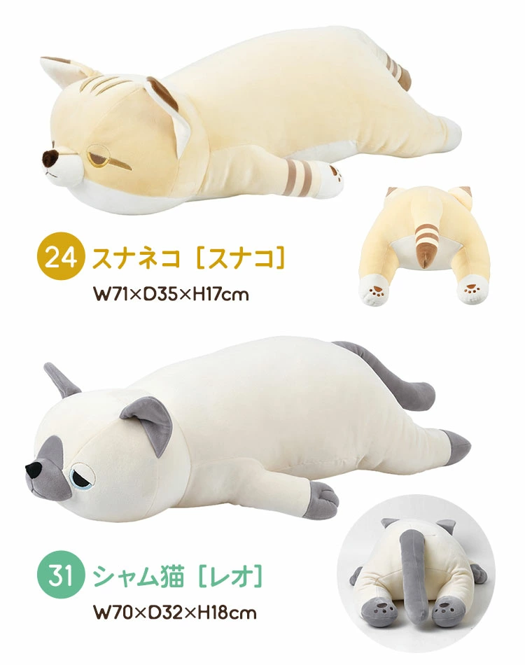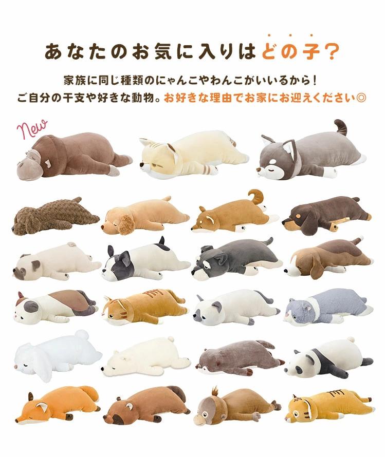 ■サイズ【犬】ゴールデン[ソラ] :長さ74×幅35×高さ17cmプードル[ショコラ]: 長さ70×幅32×高さ15cmパグ[ハナ] :長さ67×幅28×高さ16cmビーグル[ビッキー] :長さ70×幅32×高さ20cmチワワ[ココア] :長さ71×幅35×高さ17cm柴犬[コタロウ] :長さ73×幅32×高さ18cmシュナウザー[ジョイ] :長さ73×幅32×高さ18cmダックスフンド[チョコ]:長さ67×幅27×高さ17cmブルドッグ[ブルル]: 長さ66×幅30×高さ16cm【猫】ミケ猫[ゆず]: 長さ69×幅28×高さ17cmスナネコ[スナコ] :長さ71×幅35×高さ17cmシャム猫[レオ]: 長さ70×幅32×高さ18cmスコティッシュ[まる]: 長さ63×幅26×高さ18cm【その他】シロクマ[ラッキー]: 長さ76×幅32×高さ20cmうさぎ[つむぎ]: 長さ63×幅26×高さ18cmたぬき[ぽんきち] :長さ73×幅32×高さ18cmカワウソ[くるり] :長さ73×幅30×高さ20cmオラウータン[ウータン] :長さ70×幅34×高さ19cmトラ[ラム] :長さ74×幅34×高さ15cmゴリラ[ボンゴ] :長さ70×幅32×高さ20cmパンダ[リンリン] :長さ70×幅40×高さ20cm