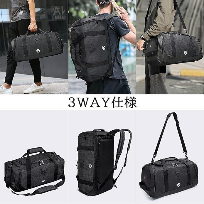 Bosiduスポーツバッグ メンズ ダッフルバッグ メンズ ボストンバッグ ジムバック リュック型可能 3way 旅行バッグ シューズ収納 大容量 防水 軽量 乾湿分離 アウトドア ユニセックス?人気 ブラックブラック