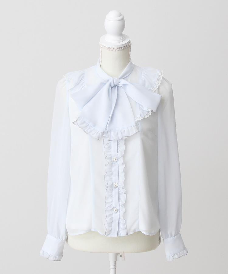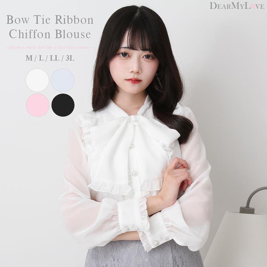 さりげないかわいさと上品さのあるフェミニンボウタイリボンブラウス【デザイン】フリルとさりげないレースがあしらわれたかわいくも上品なデザインのボウタイブラウスです。ボウタイリボンにはさりげないフリルがかわいく、一段階大人っぽくかわいらしいコーデに変身♪前立てにはパールボタン、カフスにもさりげなくついています。シフォン生地なので袖は少し透け感が感じられるのがポイントで、これからの季節にもぴったり♪どんなコーデにも万能に合わせられるのでおすすめのアイテムです!【素材】シフォン生地を使用しています。身頃部分に裏地付きです。濃色下着が透けることがありますのでインナー着用をオススメします。【コーディネート】マーメイドスカートや上品めなハイウエストデザインスカートとの相性ぴったり♪かわいいのは好きだけれど、上品で大人っぽい雰囲気のコーデがしたい方におすすめです。今までのDearMyLoveよりも一つ大人になったコーデはいかがでしょうか?《透け感》カラーによってあり 《生地の厚さ》普通 《裏地》あり 《伸縮性》なし《生産国》中国