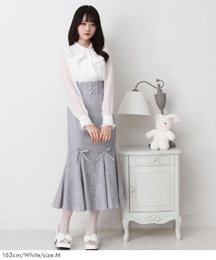 さりげないかわいさと上品さのあるフェミニンボウタイリボンブラウス【デザイン】フリルとさりげないレースがあしらわれたかわいくも上品なデザインのボウタイブラウスです。ボウタイリボンにはさりげないフリルがかわいく、一段階大人っぽくかわいらしいコーデに変身♪前立てにはパールボタン、カフスにもさりげなくついています。シフォン生地なので袖は少し透け感が感じられるのがポイントで、これからの季節にもぴったり♪どんなコーデにも万能に合わせられるのでおすすめのアイテムです!【素材】シフォン生地を使用しています。身頃部分に裏地付きです。濃色下着が透けることがありますのでインナー着用をオススメします。【コーディネート】マーメイドスカートや上品めなハイウエストデザインスカートとの相性ぴったり♪かわいいのは好きだけれど、上品で大人っぽい雰囲気のコーデがしたい方におすすめです。今までのDearMyLoveよりも一つ大人になったコーデはいかがでしょうか?《透け感》カラーによってあり 《生地の厚さ》普通 《裏地》あり 《伸縮性》なし《生産国》中国