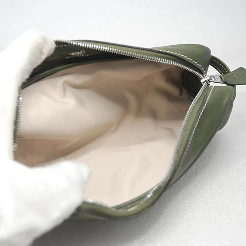 Hermès Moss Green Zippered Leather Pen Case/Pouch (Can also be used to store small items) □E Stamp 2001 [Pre-owned]