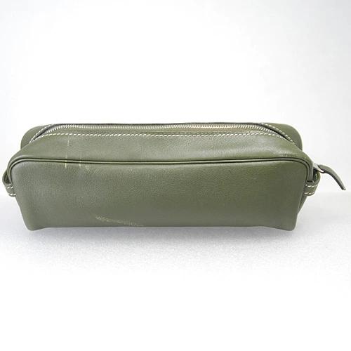 商品名モスグリーン ファスナー式 レザー ペンケース/ポーチ