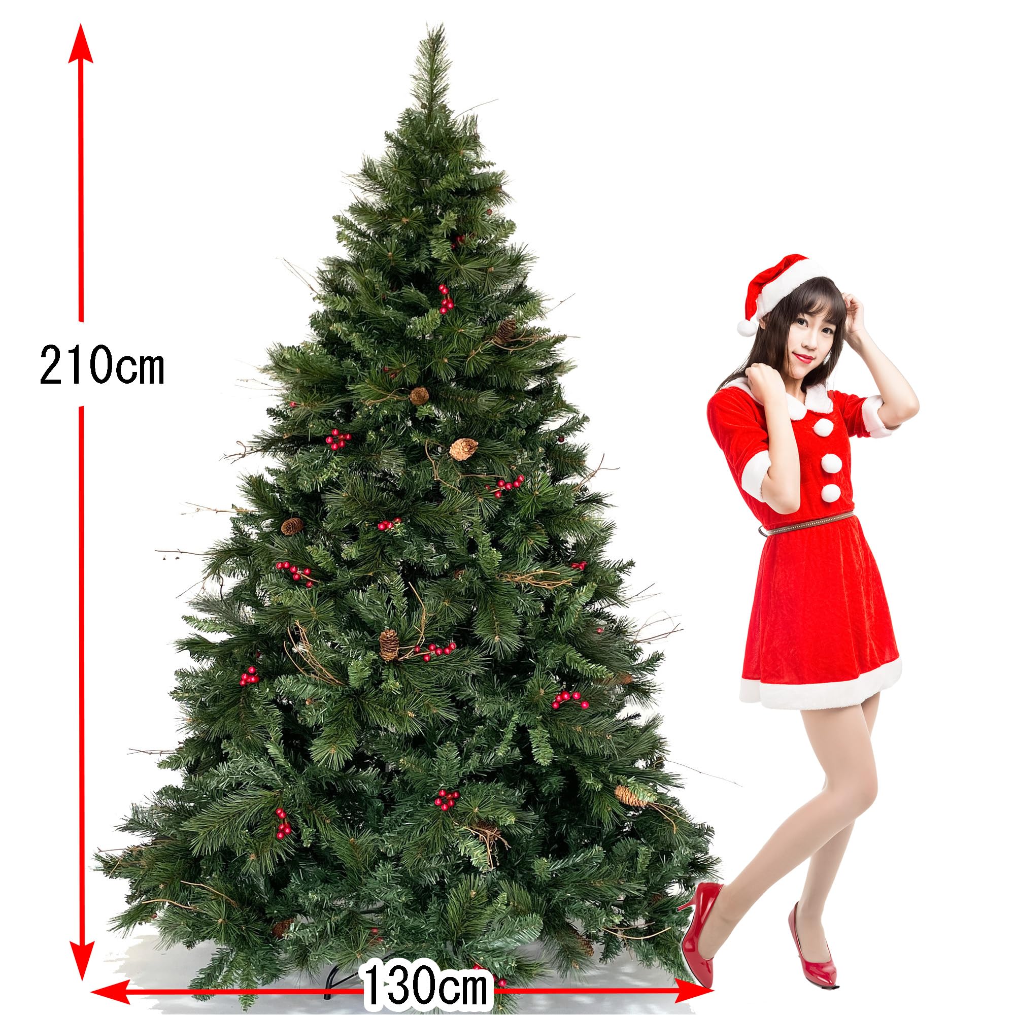 ツリーの高さ210cm×横幅(底幅)130cm 4分割+土台 ヒンジ式組み立て(所要時間約30~50分) 濃密度の枝で根本までボリューム感があり、ポットや根本飾りは要りません!とても品のあるツリーです。 2種類の小枝と赤い実、松ぼっくり、センスの良い小枝もセットされて雰囲気を出してます。??当社のオススメ品です?? 大枝はヒンジ可動式,小枝を放射状に広げて組み立てます。 箱から出したばかりの枝は固く縮んでいますので、この枝を1本1本丁寧にバランスよく開いて頂ければかなりのボリュームになります! イルミネーション(LED)ライトは付属していません、お客様自身でご用意下さい。推奨は15m~20m 250球~350球が最適です! 後片付けも簡単!収納時に折畳めるコンパクト設計。収納箱89×45×40cm カラー写真付き組立説明書付き ドイツ、ベルギー輸出専用ツリー ※注意してください!Branch Treesの製品は全てオリジナルで作成し商標登録されています。不正な業者による不正相乗り、転売など注意してください。