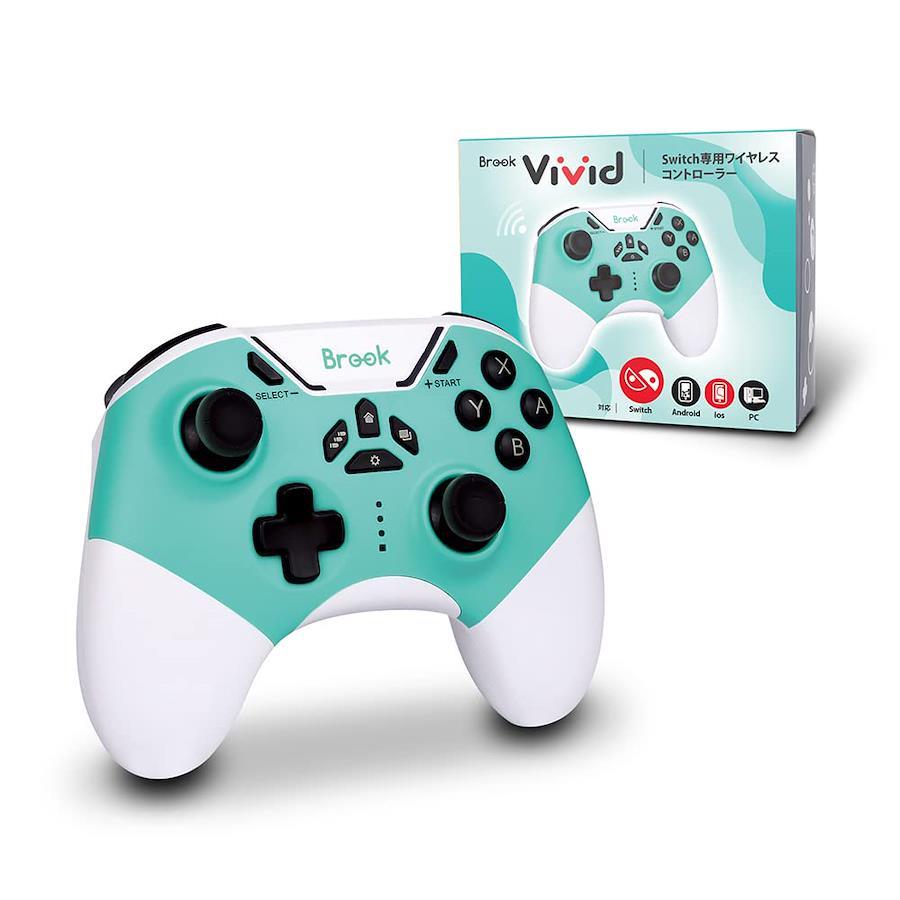 Brook Vivid Switch用 ワイヤレスコントローラー Switch/Switch Lite/Android/IOS/PC対応 キュート満点 ウェイクアップ機能 背面ボタンあり 6軸ジャイロセンサー 連射 マクロ機能 可調整振動機能 アクアブルー 【公式正規品】