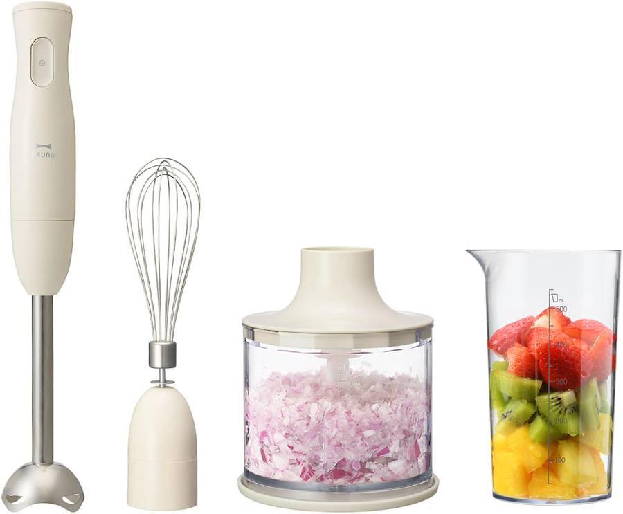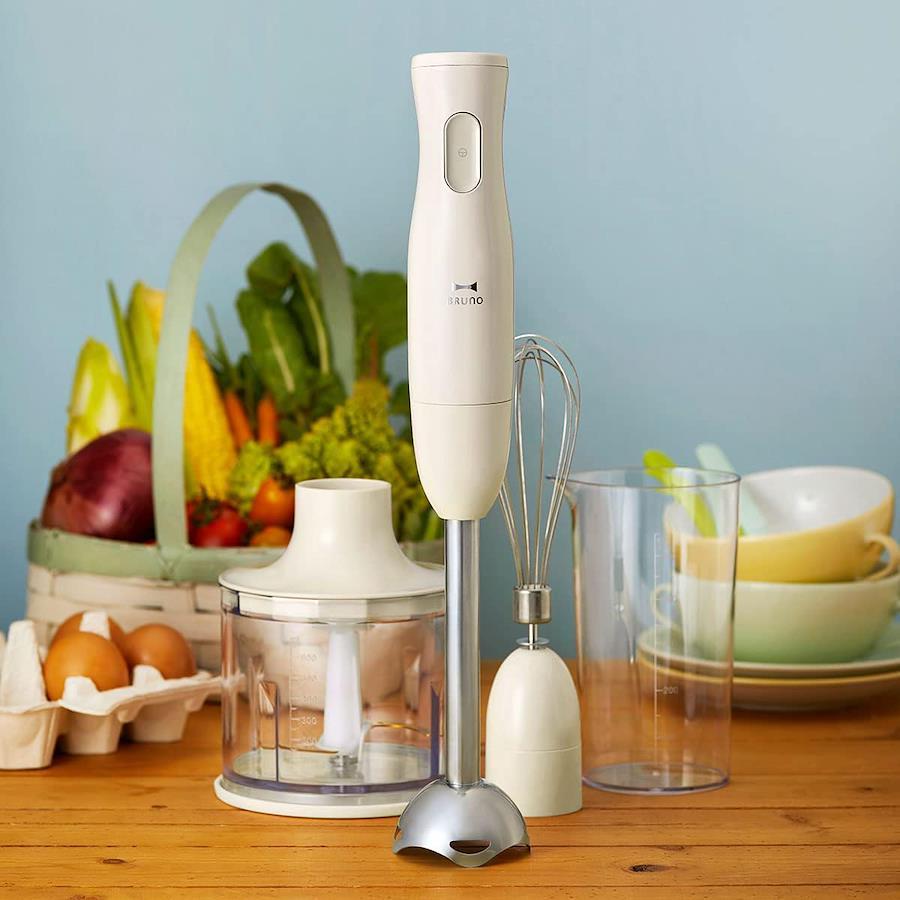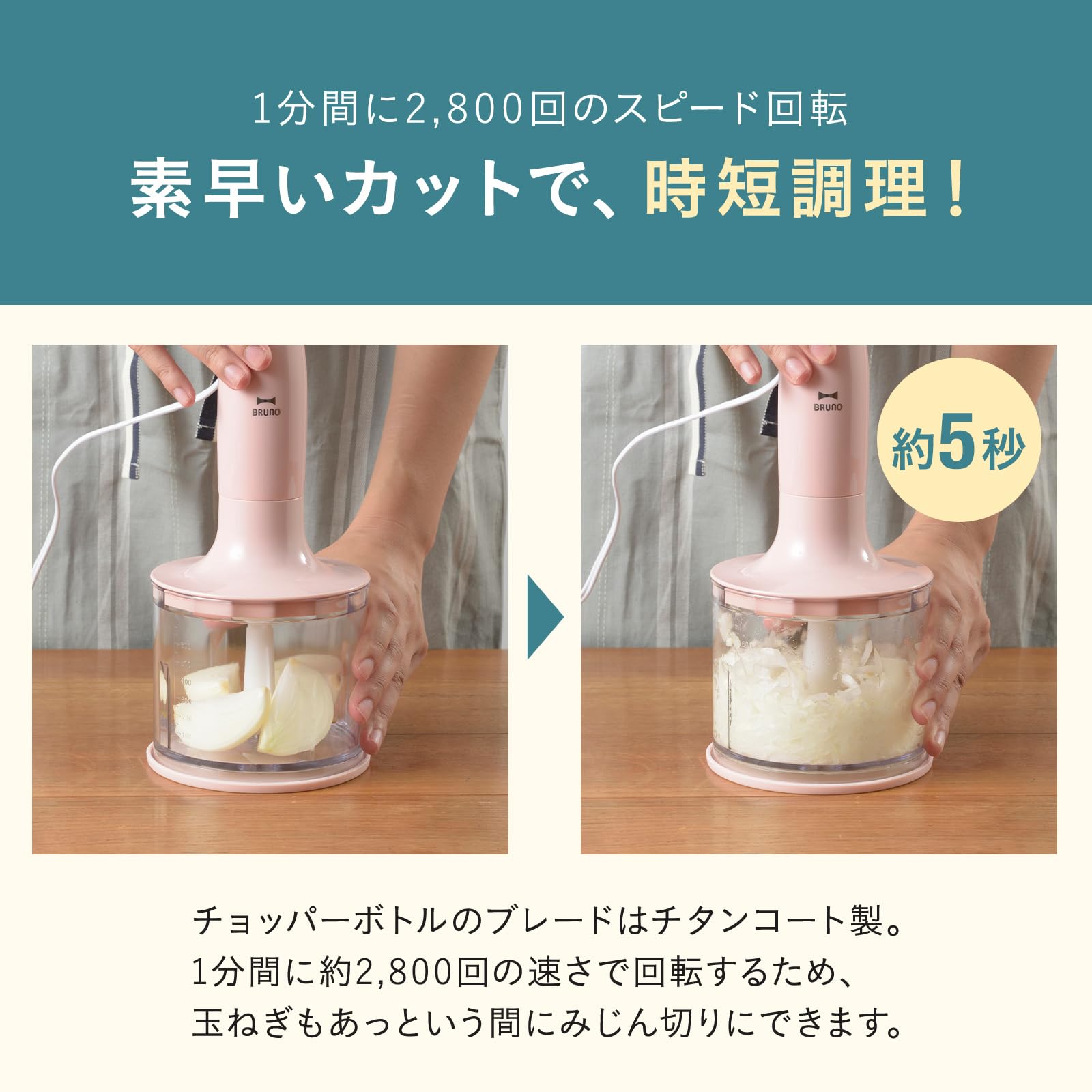 機能:ブレンダー(つぶす、混ぜる)、チョッパー(刻む、砕く)、ホイッパー(泡立てる)