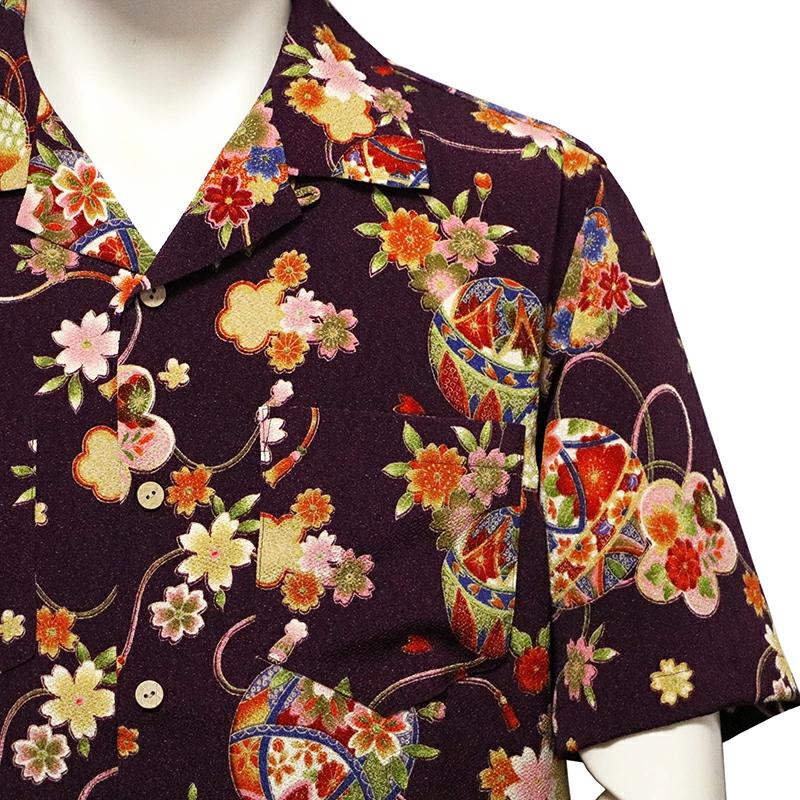 手毬 柄 縮緬 和柄 アロハシャツです。