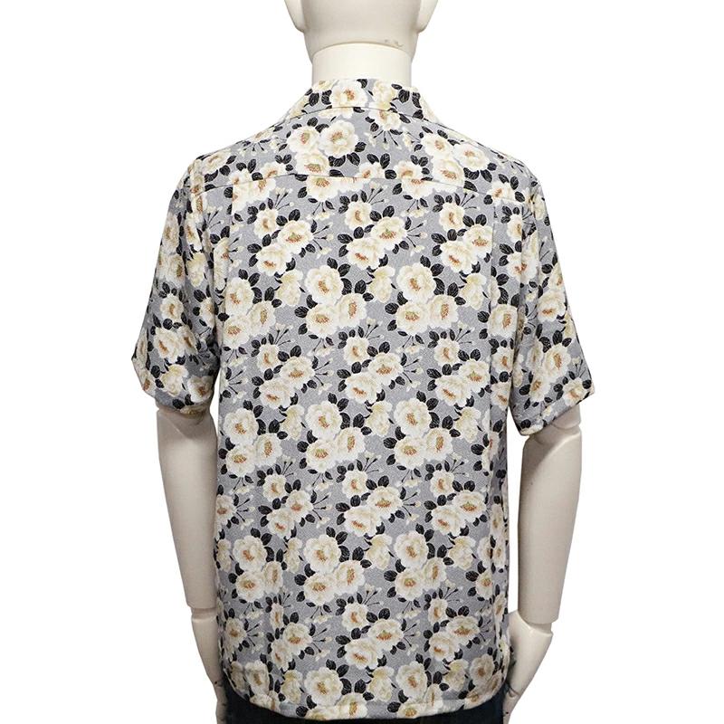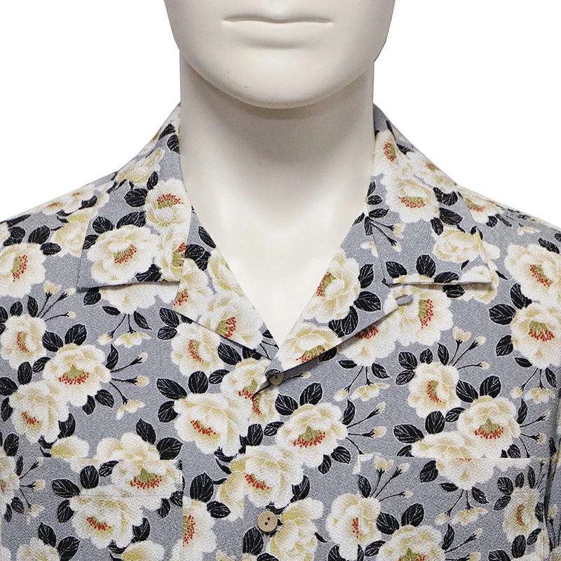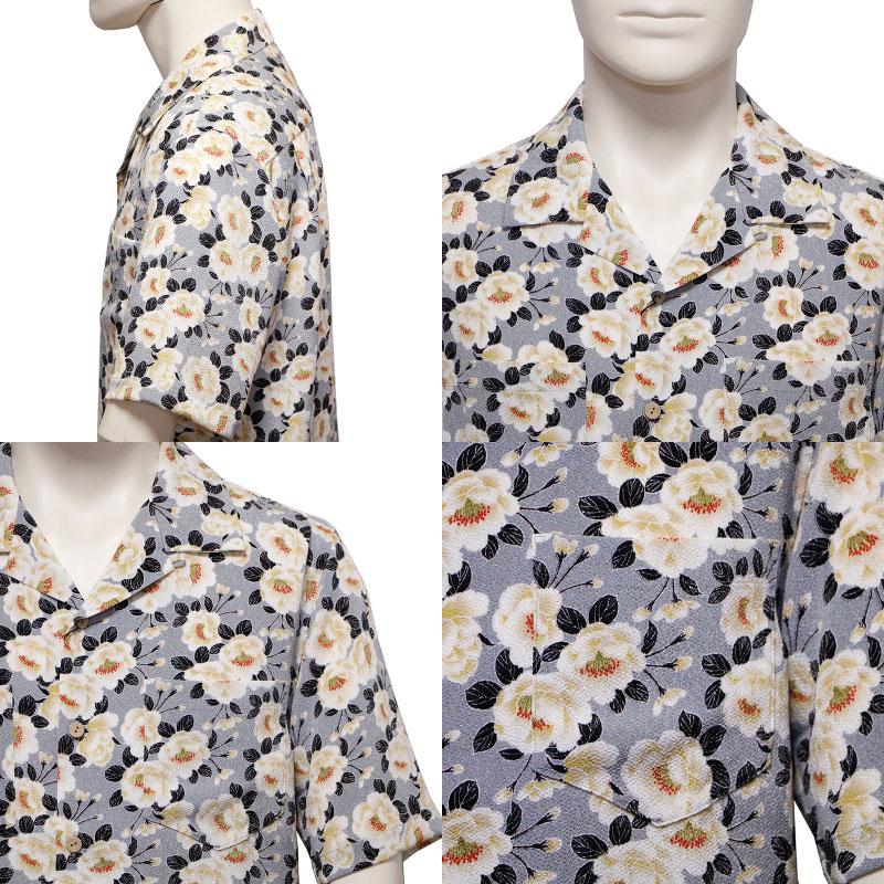 八重桜 柄 縮緬 和柄 アロハシャツ