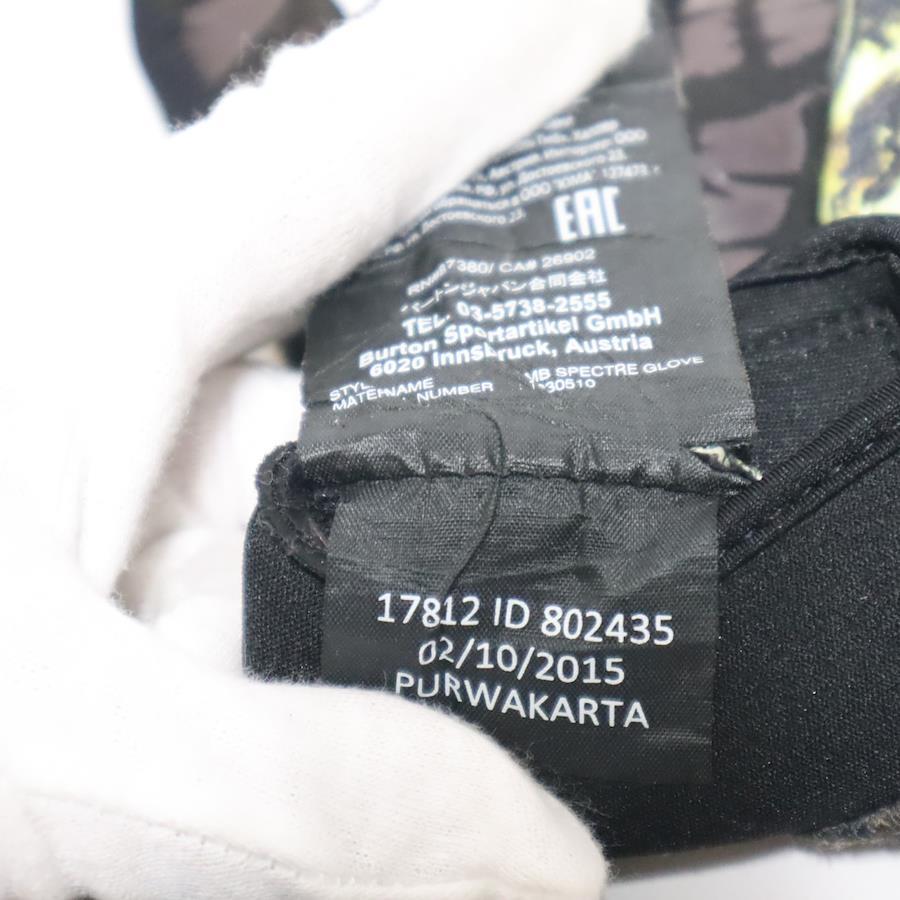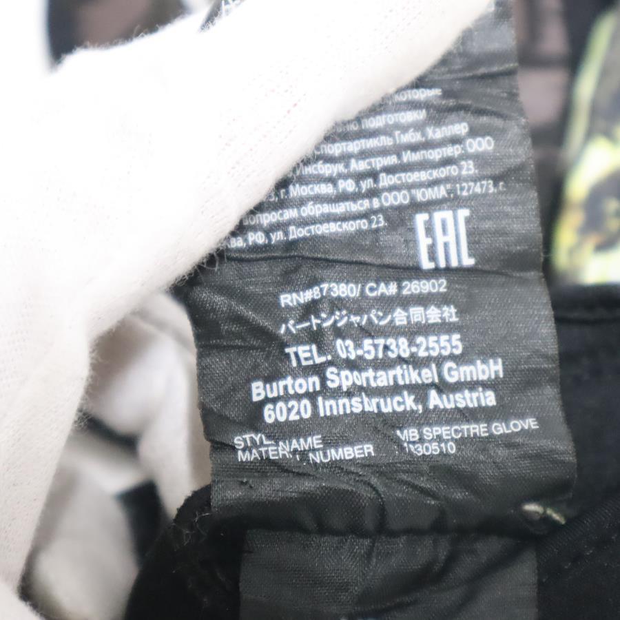 【詳細】■ 商品名・モデル:Burton MB SPECTRE GLOVE■ ブランド:Burton(バートン)■ カラー:カモ柄×マルチカラー■ サイズ:L■ 状態:- 傷・汚れ:大きなダメージはなく、通常使用による軽いスレあり- 使用感:リユース品のため、使用回数・購入時期は不明です- 動作確認:手のひらグリッププリント問題なし、リーシュ・連結クリップ完備■ 付属品:なし(本体のみ)