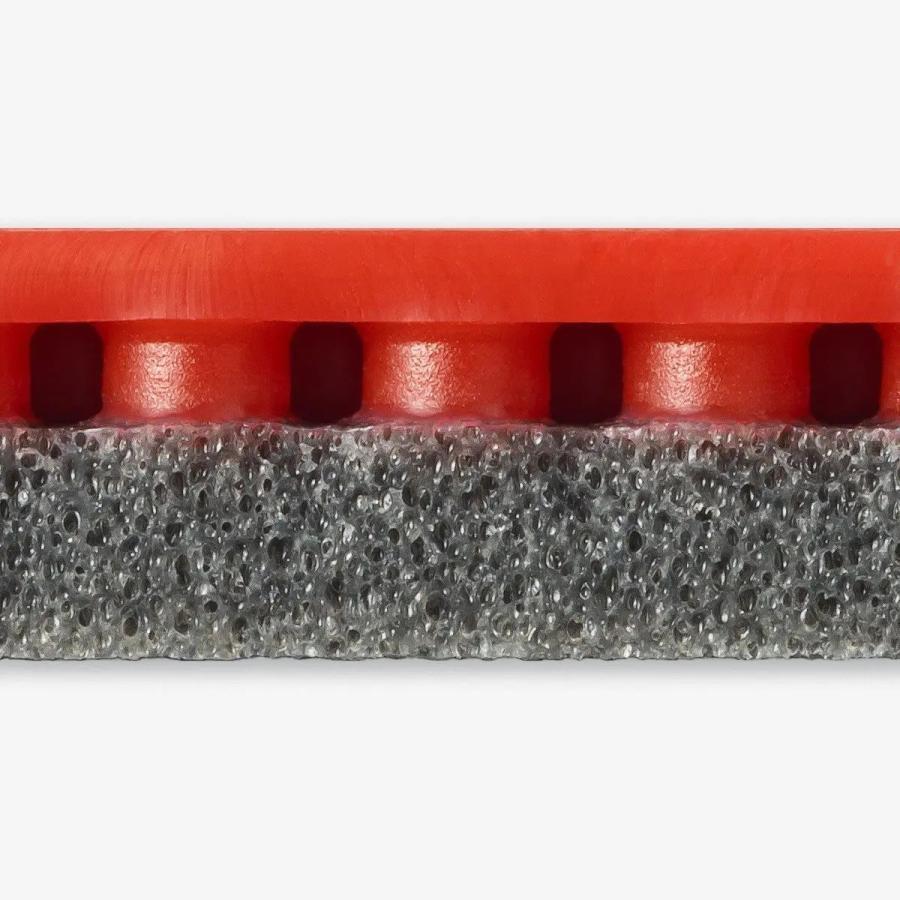 グレーの「スプリング スポンジX」を採用した『グレイザー』。球持ちがよく、表面の摩耗耐久性が高いシートと、スポンジ硬度38に設計された「スプリング スポンジX」の組み合わせは、打球に回転による威力をもたらすとともに、安定した弧線を描く打球を可能にします。回転を重視したパワフルな両ハンドドライブやカウンターが打てる喜びを、より幅広いレベルの選手に提供します。