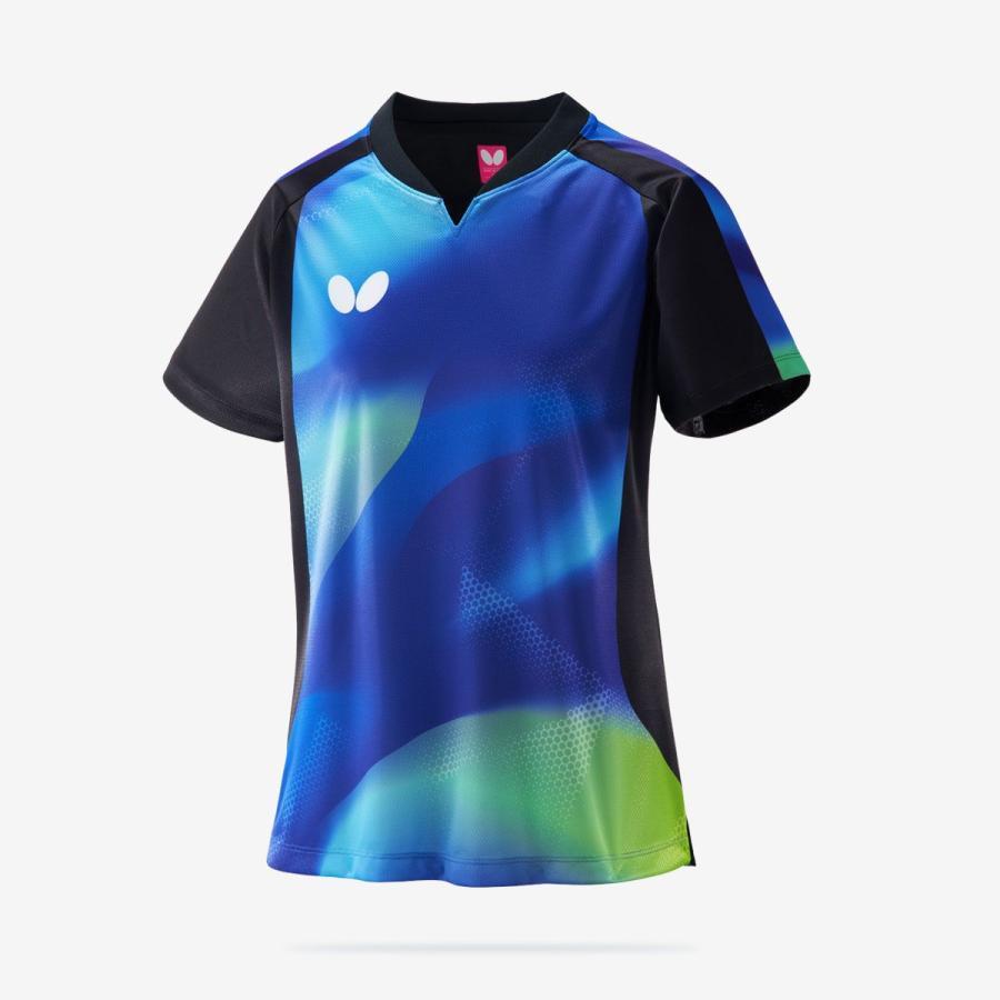商品名:グレスリー・シャツ・レディース発売日:2023年4月1日品番:46329タイプ:ゲームシャツ(レディース)※JTTA公認カラー:ロイヤルブルー(183)、フレッシュオレンジ (053)、ローズバイオレット (244)サイズ:レディース S, M, L, O, XO素材:ポリエステル100%/スタティックドライ(セーレン)特徴:吸水速乾、伸縮、軽量、透け防止原産国:日本