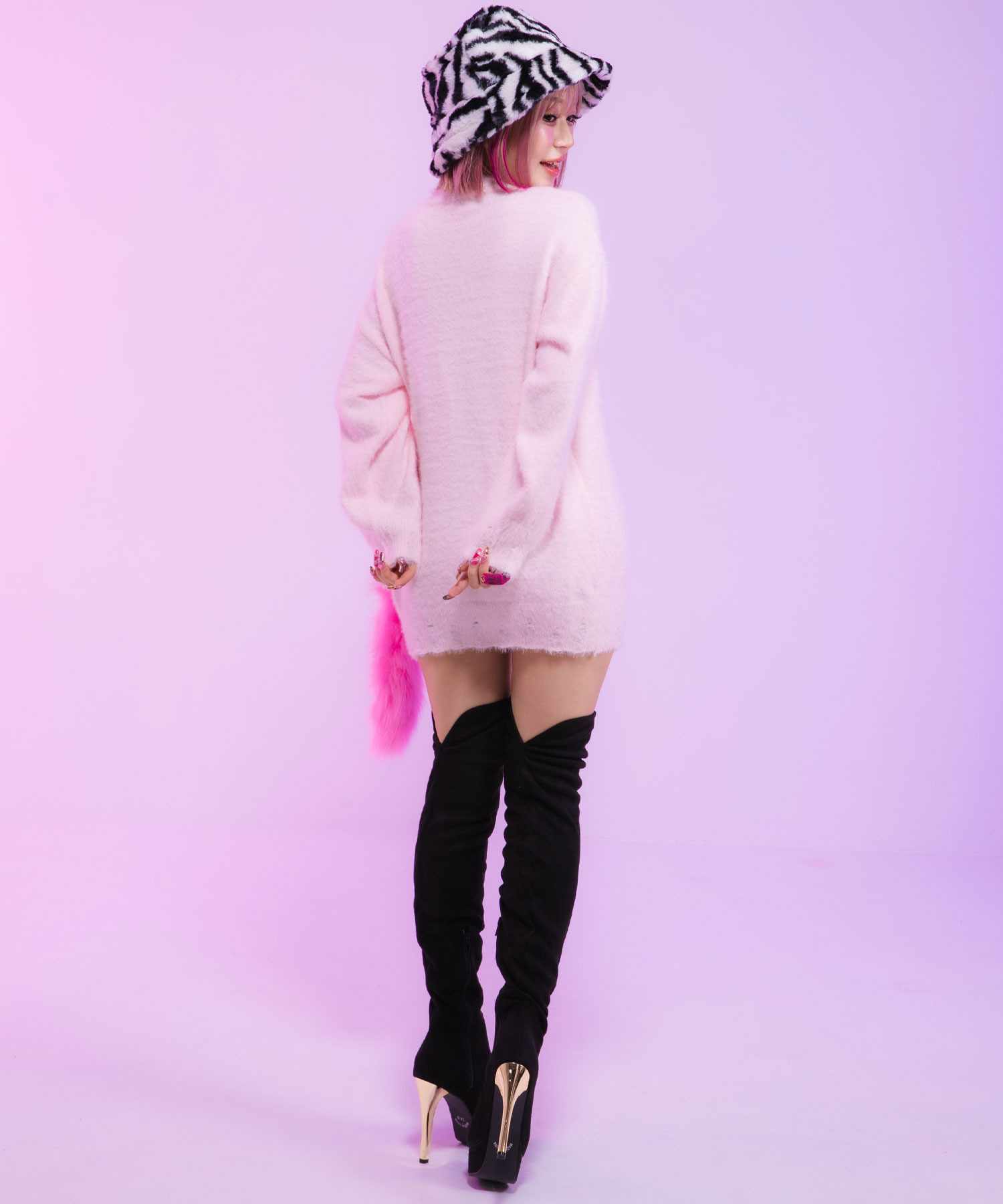 ◆Design蝶(バタフライ)モチーフのビジューが施され、上品でフェミニンなデザインが特徴です。柔らかいニット素材を使用し、快適な着心地が楽しめます。