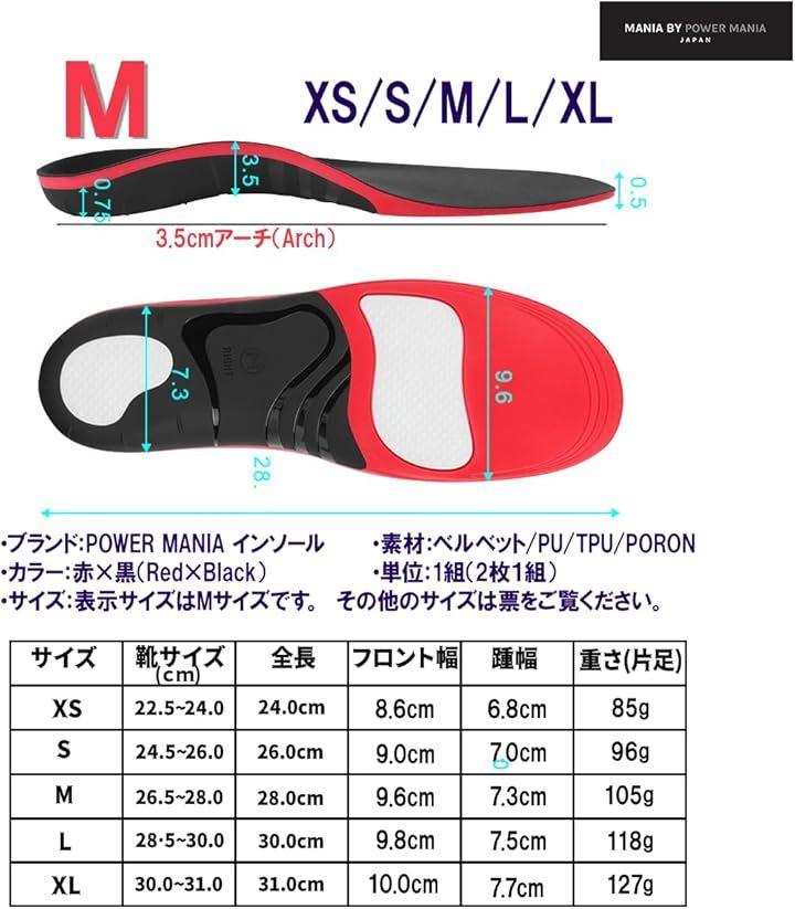 「商品分類/サイズ展開」タイプ: ハイクオリティ / サイズ XS:22.5cm~24cm S:24.5cm~26.0cm M: 26.5cm~28cm L:28.5cm~30cm XL:30cm~31cm の5サイズ展開しており、男性 女性 共に 中敷 としてご活用いただけます。