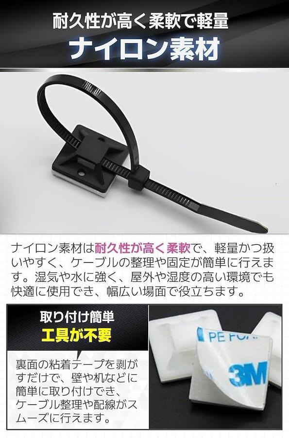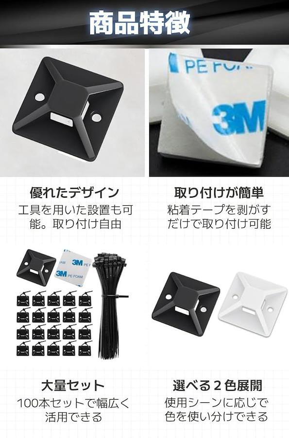 取り付け自由/(2)取り付けが簡単:粘着テープを剥がすだけで取り付け可能/(3)大量セット:100本セットで幅広く活用できる/(4)選べる2色展開:使用シーンに応じで色を使い分けできる