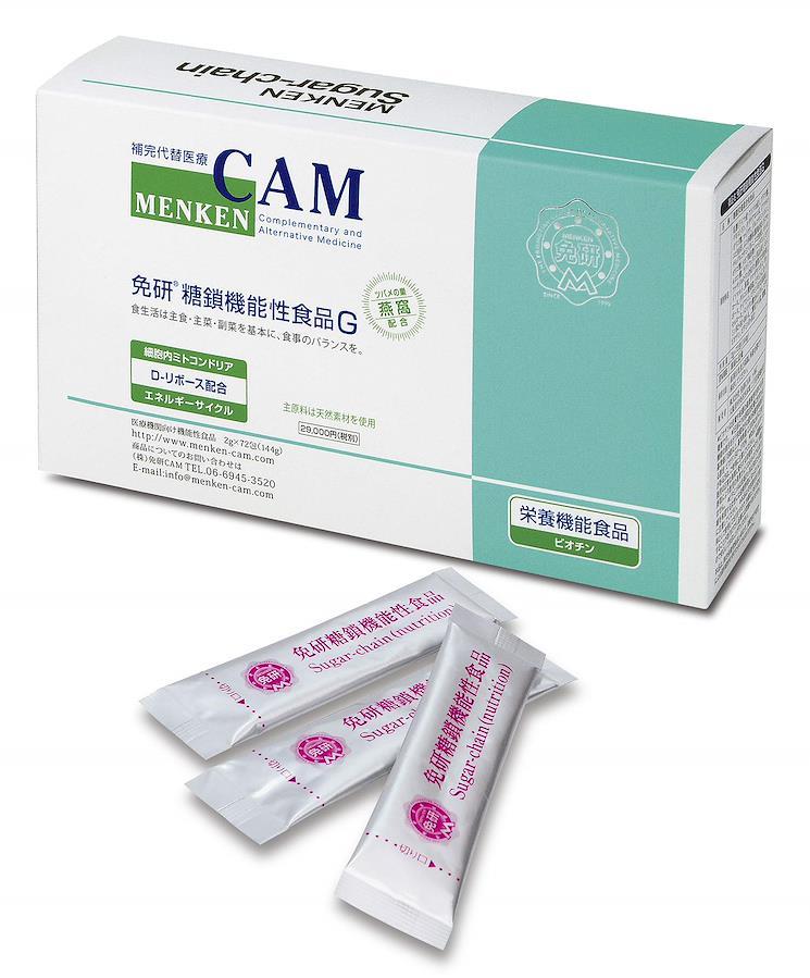 ■サイズ:??19.8x11.9x5.6cm;220g免研 糖鎖機能性食品Gは糖鎖に必要な8種類の栄養素(グルコース・ガラクトース・マンノース・キシロース・フコース・N-アセチルグルコサミン・N-アセチルガラクトサミン・N-アセチルノイラミン酸=シアル酸)が含まれています。 免研 糖鎖機能性食品Gは糖鎖に必要な8種類の栄養素が含まれています。 ■重要なお知らせ原材料・成分乳糖、ぶどう糖、キダチアロエ末、マイタケ、グルコサミン(カニ・エビ由来)、ムコ多糖体(豚肉由来)、ホエイパウダー(乳製品)、N-アセチルグルコサミン(カニ・エビ由来)、デキストリン、メカブ抽出物(フコイダン)、燕窩(ツバメの巣)、増粘剤(カラギナン)、甘味料(キシロース)、グルコン酸亜鉛、D-リボース、ビタミンC、ナイアシン、パントテン酸カルシウム、ビタミンB6・B2・B1・B12・ビオチン使用方法免研 糖鎖機能性食品Gのお召し上がり方 C免研 糖鎖機能性食品Gは、毎日の健康維持のために1日1~3包を目安に水などでお召し上がり下さい。
