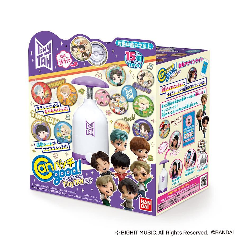 『Canバッチgood!(カンバッチグ-)』より、BTSのキャラクター「TinyTAN(タイニータン)」の缶バッチが15個つくれちゃう「Canバッチgood! TinyTANセット」が登場!付属のホロキラシートでキラキラ輝くバッチを作ることも出来ます。素材をセットしてハンドルを回すだけで、約1分ほどで簡単に「TinyTAN」のキャラクター缶バッチが作れます。本体はこのセットオリジナルの「TinyTAN」のデザイン。イラストは本商品のオリジナルの描き起こしです。別売りの素材セットや、お手持ちの雑誌やお菓子のパッケージなどを切り抜いて使用すれば、たくさんのオリジナルバッチを作ることもできます。(本商品に付属するもの以外すべて別売りです。)[セット内容]・本体…1台・デザインシート…1枚・テンプレート…1個・上パーツ…15個・下パーツ…15個・安全ピンパーツ…15個・ホロキラシート…7枚・透明シート…8枚・取扱説明書…1枚※所要時間には個人差がございます。 (C)2021 BIGHIT MUSIC.All Rights Reserved. (C)BANDAI 梱包サイズ:1×18×11cm 生産国:中国