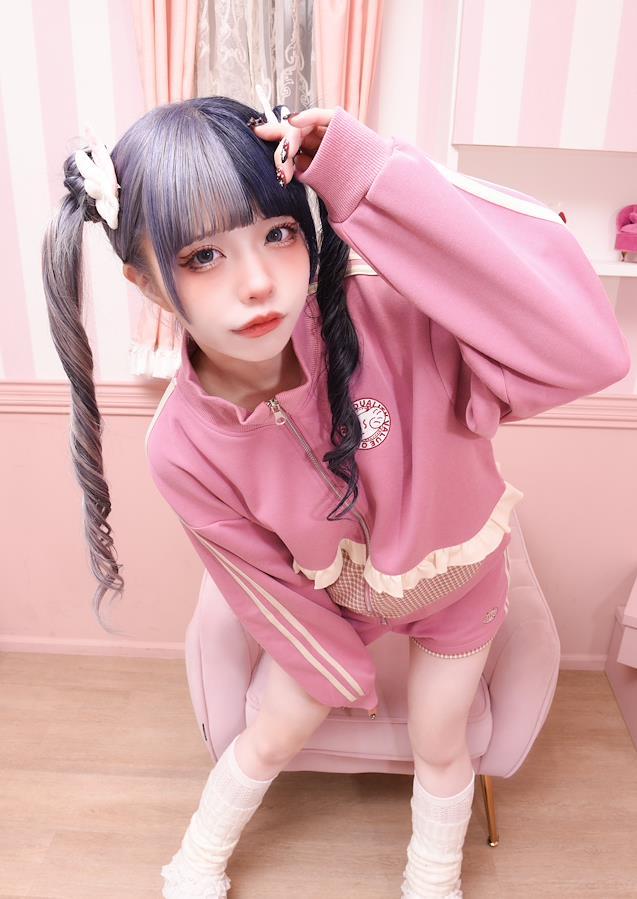・カラートラックジャケット:ピンク、ネイビーパンツ:ピンク、ネイビー