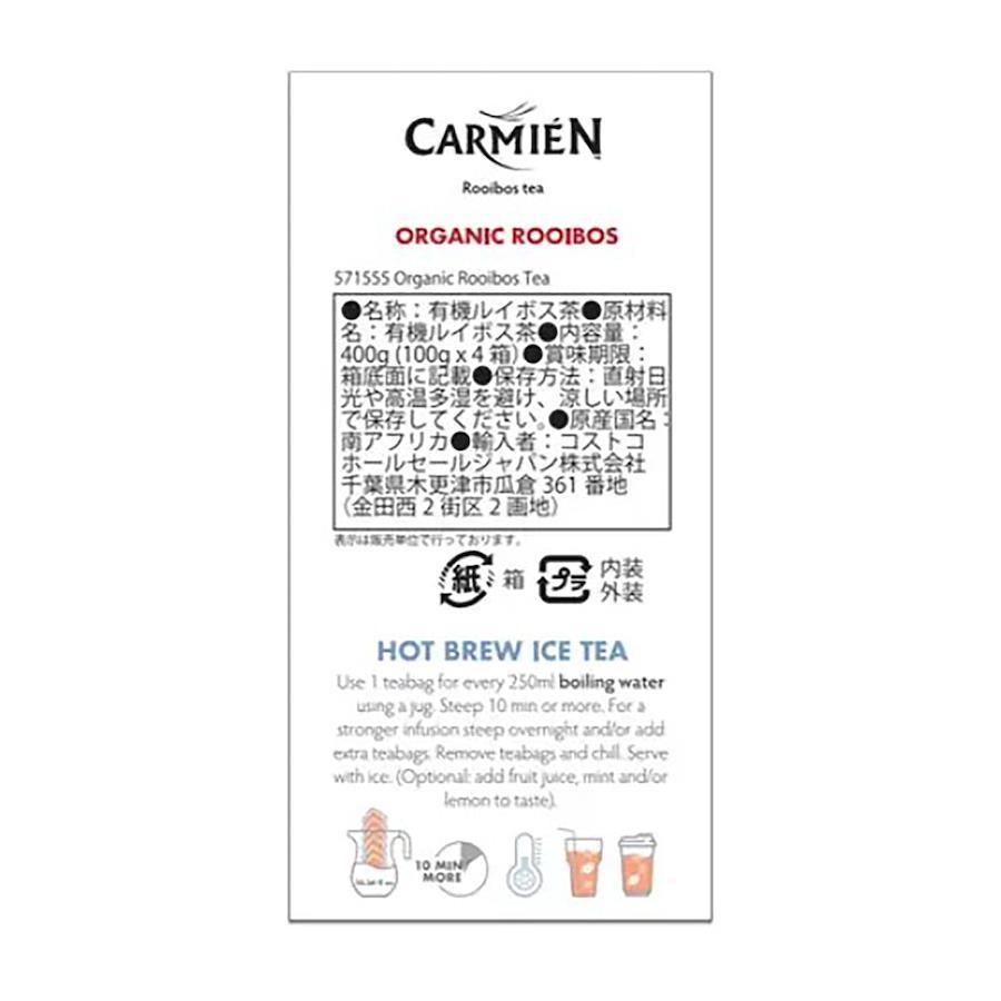 CARMIEN Organic Rooibos Tea 40 Tea Bags (100g) x 4 Boxes JAN6009623190215