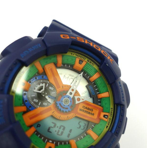 ・メーカー :CASIO / カシオ・製品型番 :GA-110FC・サイズ :ベルト内周 (約cm):~22,フェイス横 (約cm):5,フェイス縦 (約cm):5,総重量 (約g):72,・色(柄)の系統:ネイビー オレンジ グリーン・デザイン :メンズ腕時計 クォーツ・付属品 :なし-------------商品状態-------------・ランク :B・詳細 :スレ、薄キズ等、一般的な使用感があります。