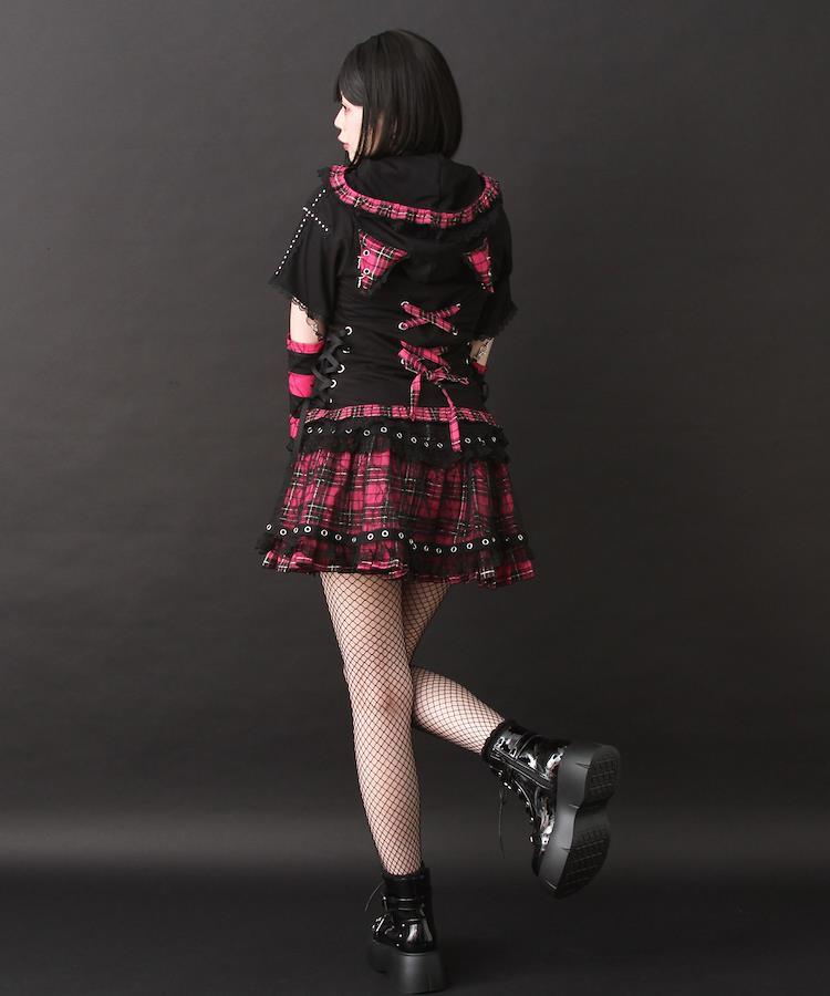 同じチェック生地使用していた十字架クモレースチェックティアード風スカートと合わせるのがオススメ