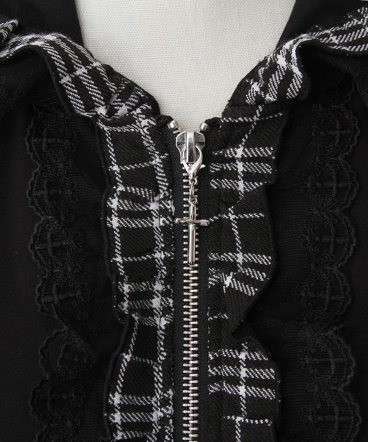 ボディには十字架柄のレースフリルを全面に使用しております。