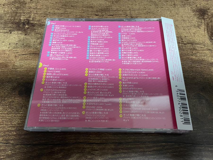 (1) 始まりの朝 (メインテーマ)(2) 絶望(3) 僕らは今のなかで (TVサイズ)(4) ルンルン↑どんより↓(5) ゆったりお昼休み(6) ん???(7) 過ぎ去りし日々(8) 朝練(9) Private Wars(10) 理事長への談判(11) 愛してるばんざーい! (Prepro Piano Mix)(12) 幼き日の夕陽(13) ススメ→トゥモロウ (TVサイズ)(14) 前回のラブライブ!(15) チグハグ(16) 気まずい空気(17) 作戦会議(18) チェイス(19) きらめき (ED Arrange)(20) 憂いの夕暮れ(21) 桜並木の通学路(22) 真剣な眼差し(23) START:DASH!!※DISC2含む全54曲構成