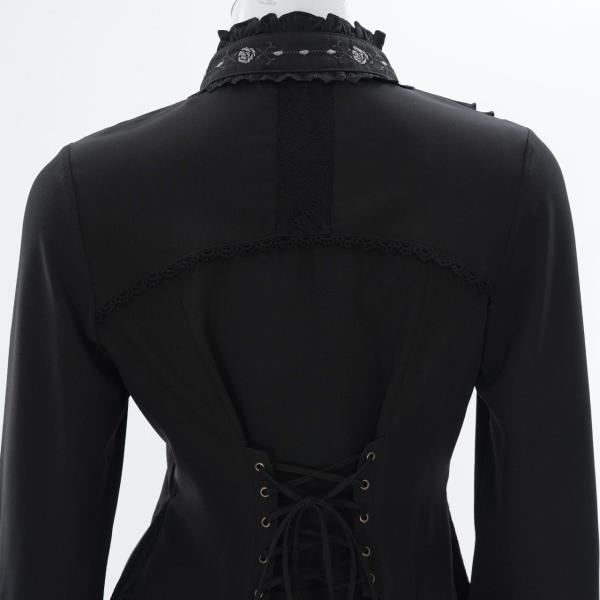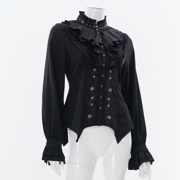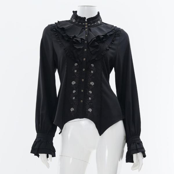キュート&エレガントな薔薇刺繍入りフリルブラウス。