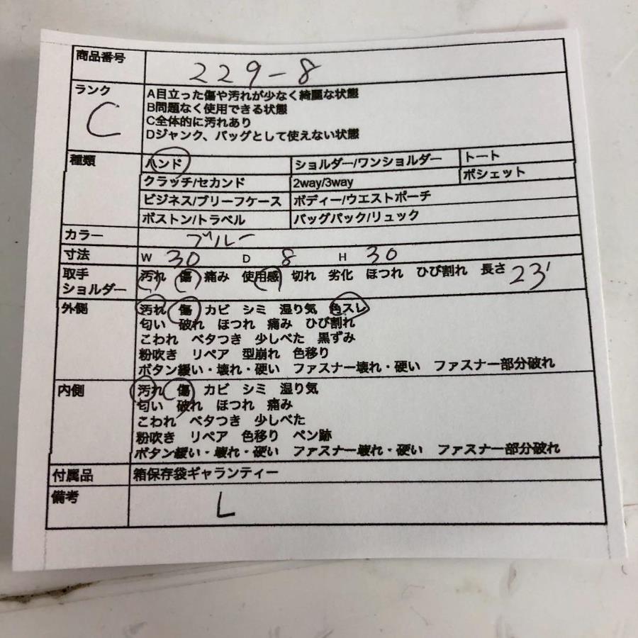 全体的に使用感あります。【外側】汚れ、傷、角スレが御座います。【内側】汚れ、傷が御座います。【取っ手、ショルダーストラップ】汚れ、傷、使用感が御座います。長さ23cm