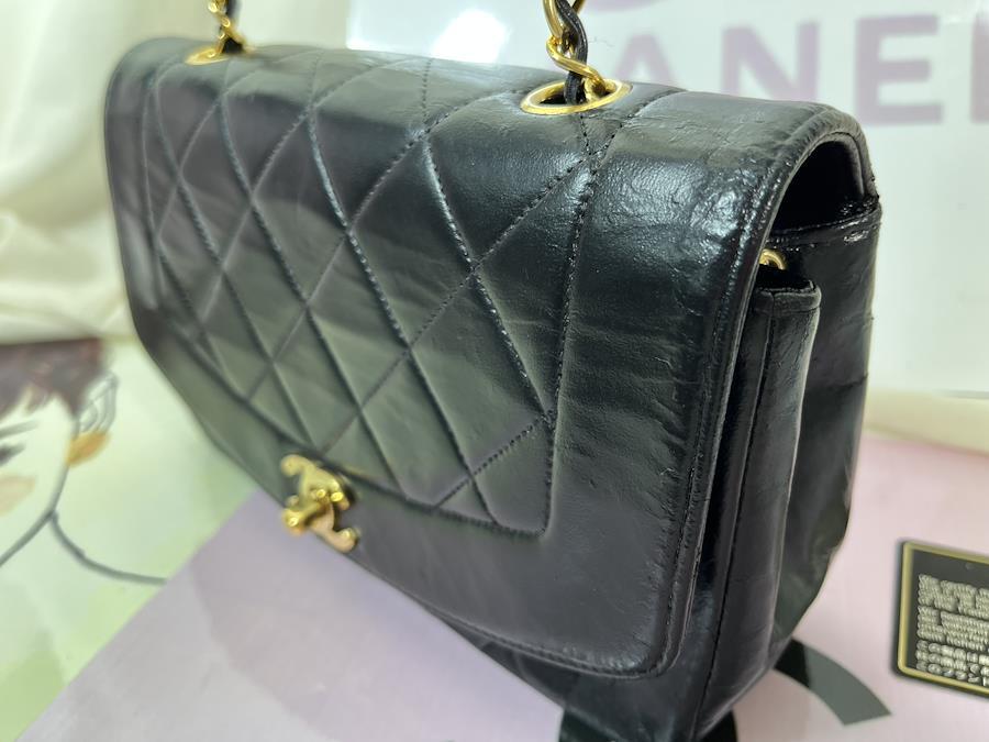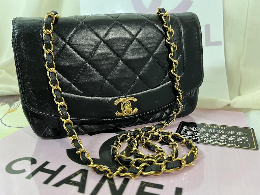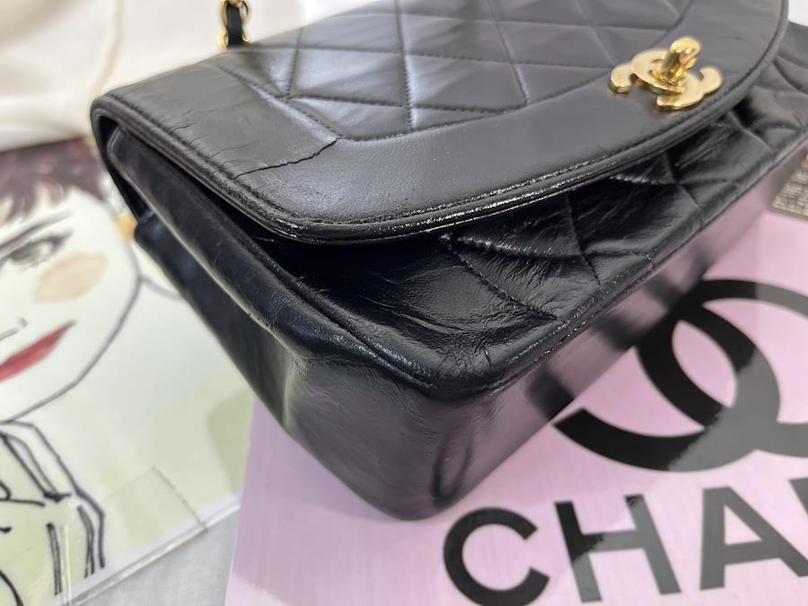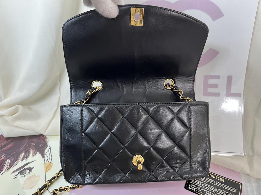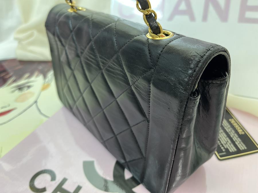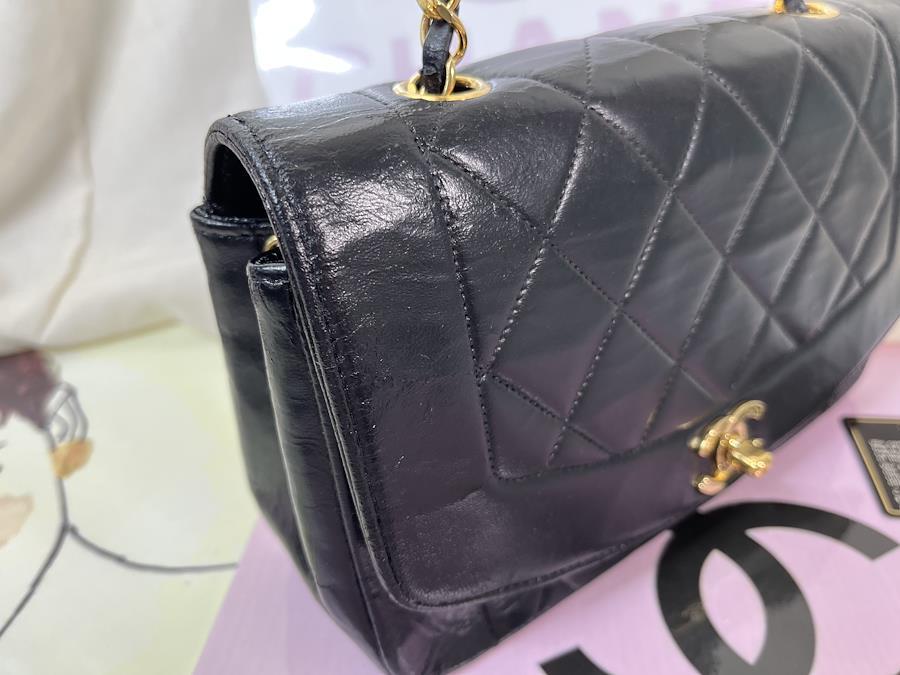 ご覧いただきありがとうございます。こちらは CHANEL(シャネル) の中でも高い人気を誇る、ヴィンテージ「ダイアナ マトラッセ」チェーンショルダーバッグです。端正なフラップラインと上品なチェーンストラップが美しく調和した名作で、クラシックな佇まいは時代を超えて愛されています。程よいサイズ感で実用性も高く、コーディネートに気品を添える一品です。近年は流通数が減少しており、希少性が年々高まっています。