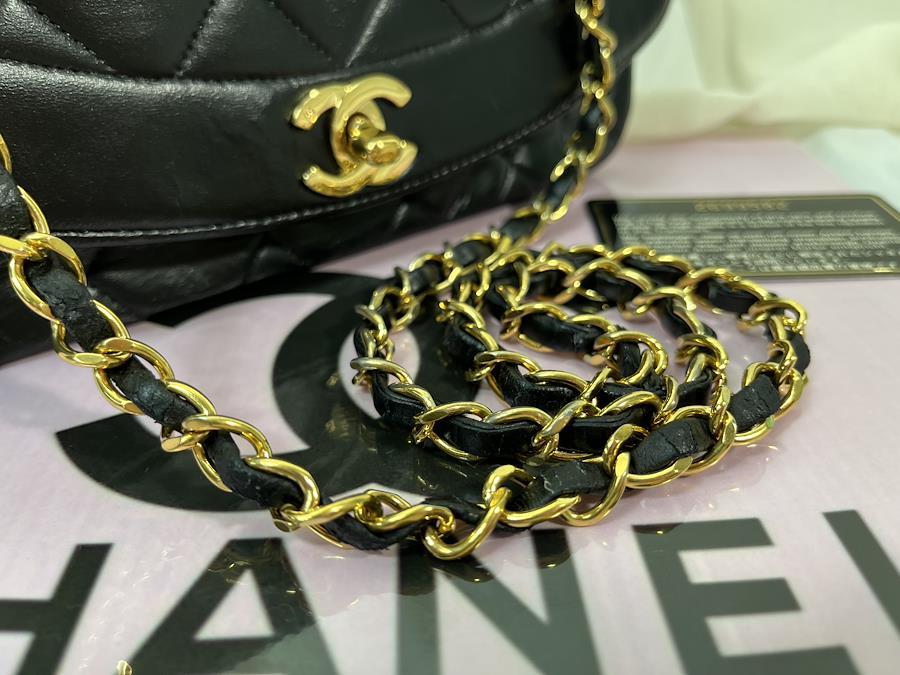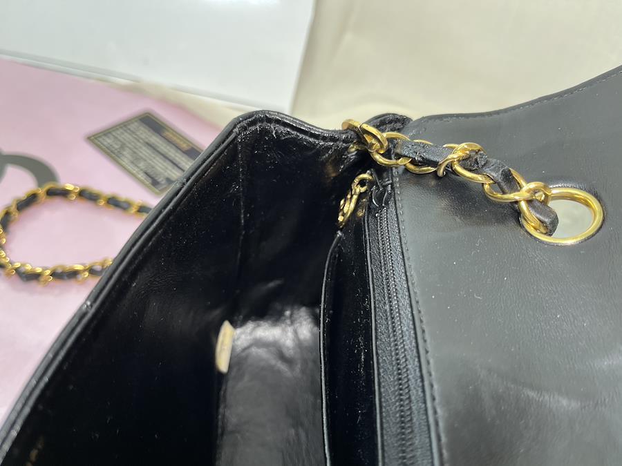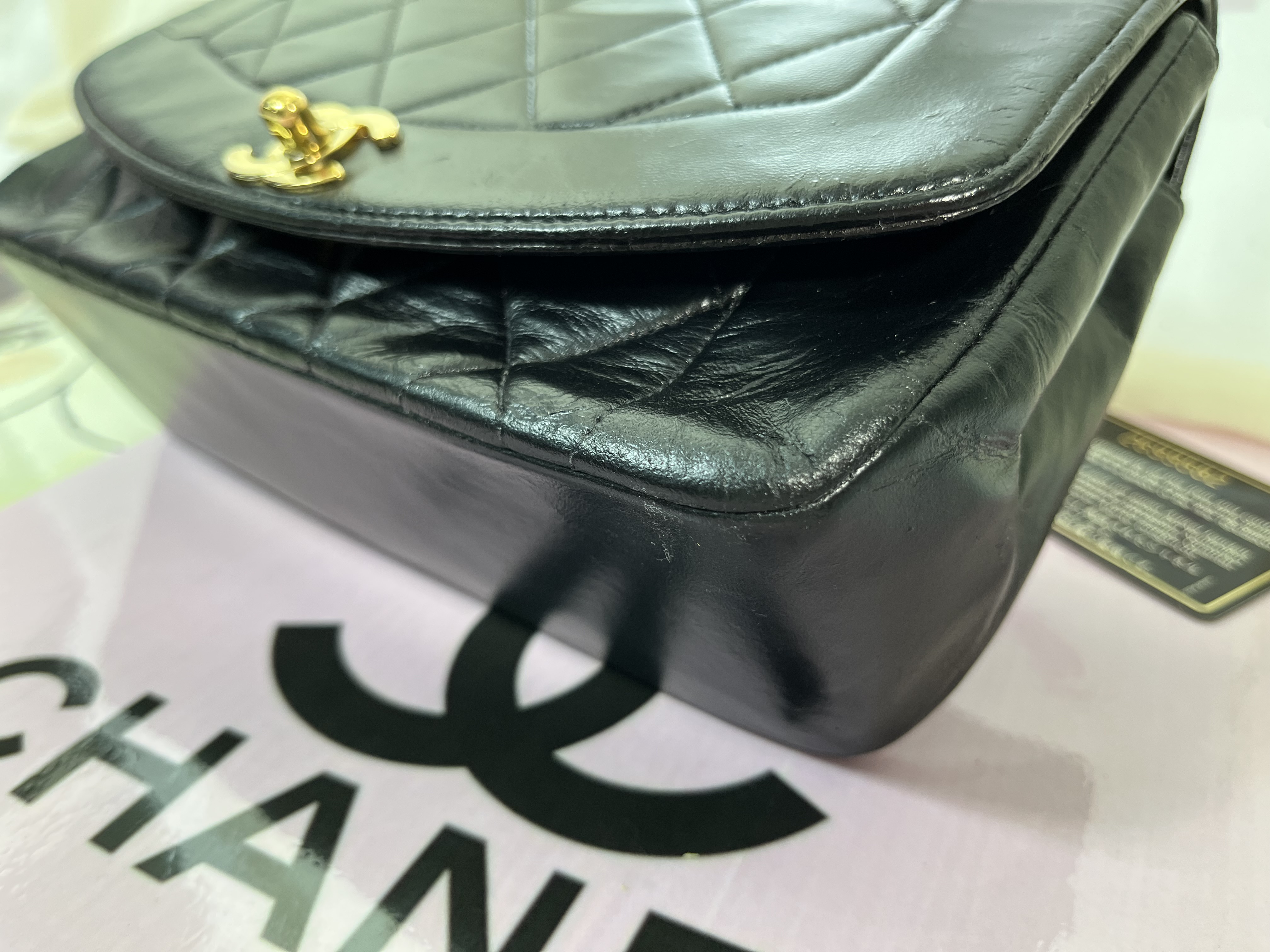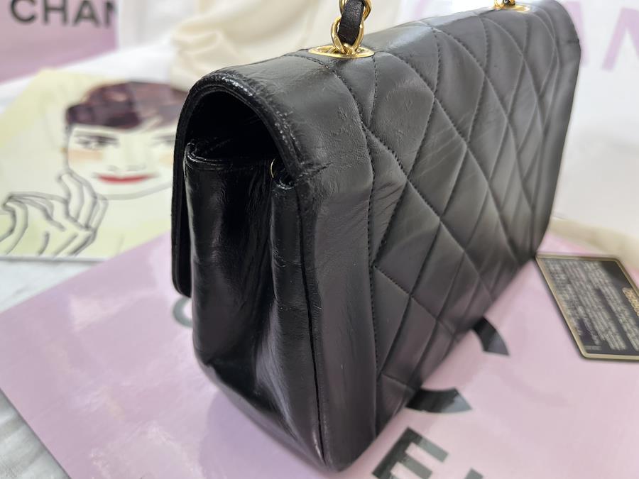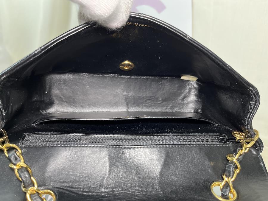 ご覧いただきありがとうございます。こちらは CHANEL(シャネル) の中でも高い人気を誇る、ヴィンテージ「ダイアナ マトラッセ」チェーンショルダーバッグです。端正なフラップラインと上品なチェーンストラップが美しく調和した名作で、クラシックな佇まいは時代を超えて愛されています。程よいサイズ感で実用性も高く、コーディネートに気品を添える一品です。近年は流通数が減少しており、希少性が年々高まっています。
