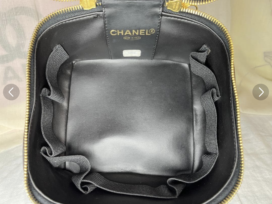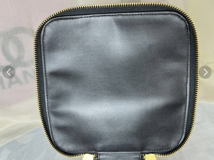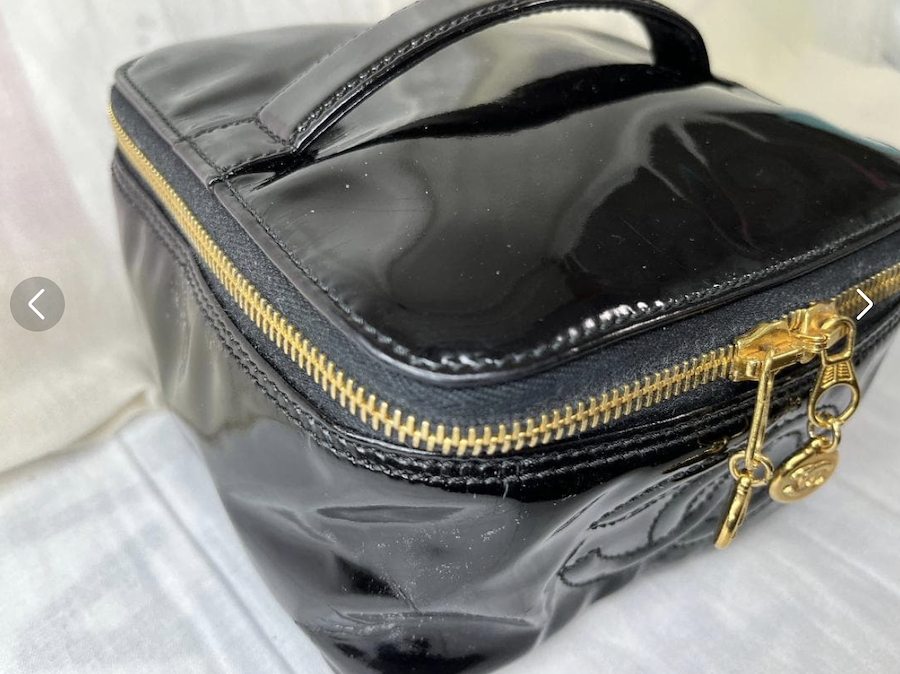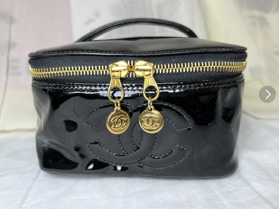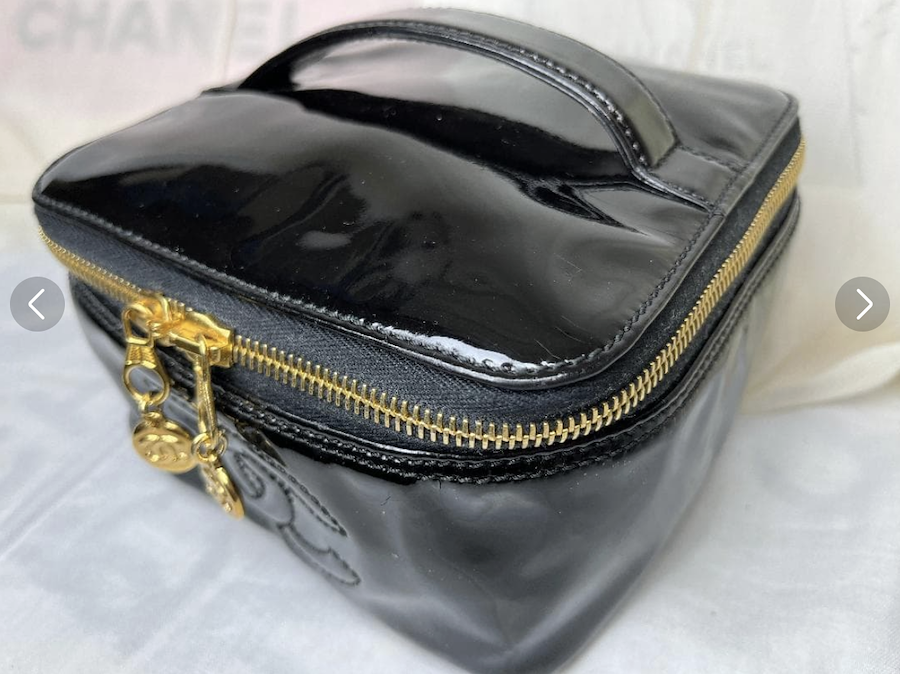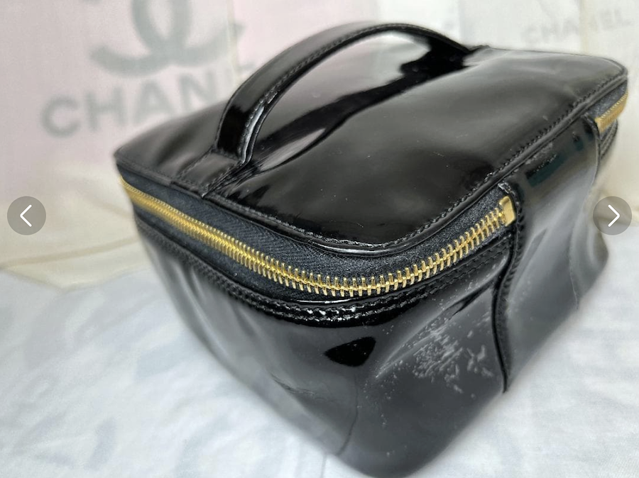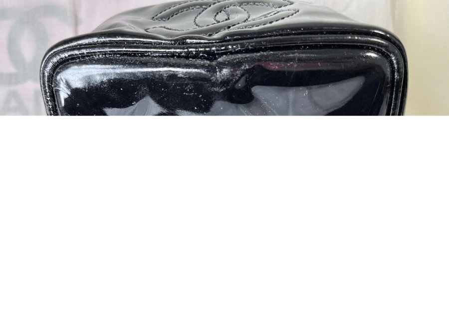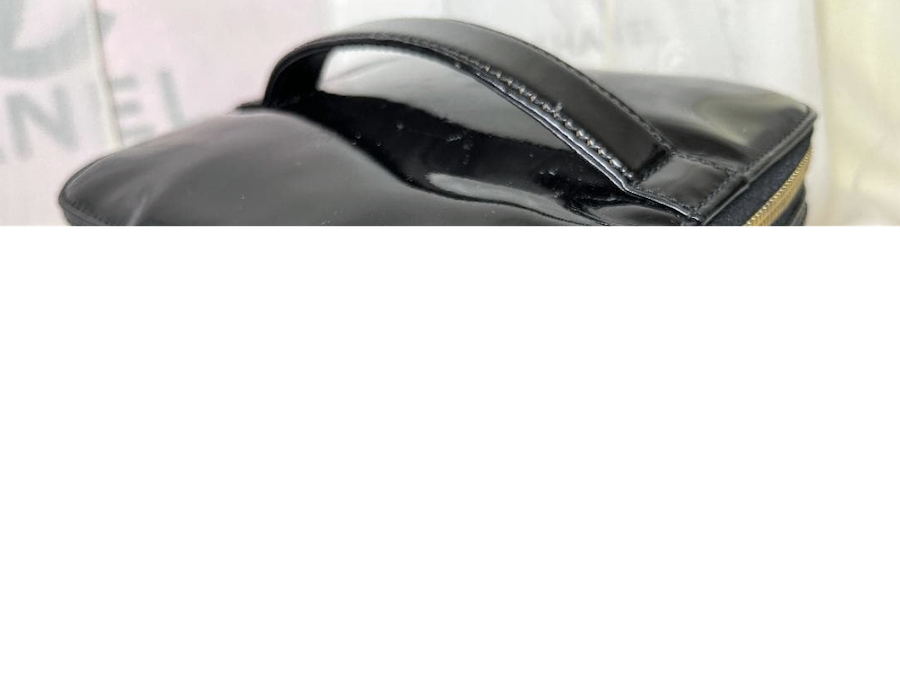 艶やかなエナメルの質感と、フロントのココマークが印象的なCHANELのバニティバッグ。