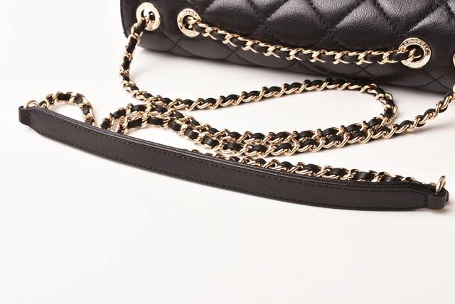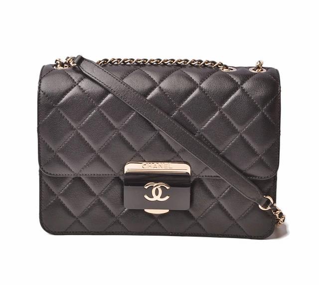 世界中のセレブに大人気のシャネル、チェーンバッグです。国内では希少なラインで入手困難。スクエアのフォルムで、かっちりした印象になります。クロスボディバッグ、パーティバッグ、スタイルにあわせて2WAYでの使用が可能です。小物の持ち運びに便利なサイズ感。ブラックとゴールドのゴージャスなカラーで、イヴニング、パーティシーンにも最適!