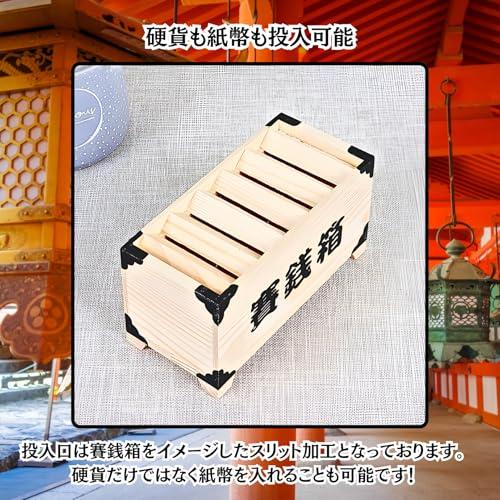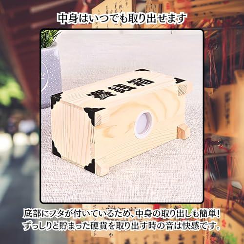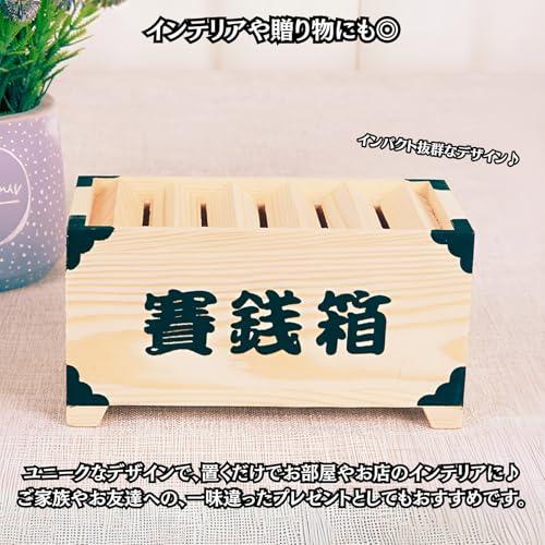 【本物の賽銭箱のようなデザイン】まるで本物の賽銭箱のようなデザインの、ユニークな貯金箱です。良質な木材を使用しており、硬貨を入れると独特の心地よい音が響きます。御利益で運気もアップするかも!? 【紙幣も投入可能】投入口は賽銭箱そのままのスリット加工となっておりますので、硬貨だけではなく紙幣も入れられます!底部にフタが付いており、中身の取り出しも簡単です。 【インテリアや贈り物にも◎】ユニークなデザインで、置くだけでもお部屋やお店のインテリアとしてお使い頂けます。ご家族やお友達への一味違ったプレゼントとしてもおすすめです。お相手も可愛らしい賽銭箱に喜ぶこと間違いなし! 【製品仕様】サイズ:W15cm×D7cm×H8cm / 材質:木材 【安心のサポート保証】本製品は購入から30日間の保証付きとなります。日本人スタッフが24時間以内に迅速・丁寧にご対応いたしますので、安心してお買い求めください。
