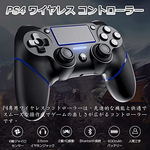 【2025新登場 P4コントローラー・広範囲のシステム互換性】本ワイヤレスコントローラーは斬新なデザインとユニークな外観を持っています。USB端子に接続するだけで、有線コントローラーになれ手軽に使用でき、そして、最新のチップデザインが搭載され、最新バージョンのPS4システムソフトウェアと完全に適合します。P4ワイヤレスコントローラーはP4、P4 Pro、P4 Slim、P3、PC(Windows7/8/10)、スマートフォンなど多数のゲームプラットフォームと完全に互換性があります。コントローラー背面にはリセットキーがあり押すと、充電できない問題などが解決します。マルチプレイヤーゲームが実現でき、最大4台 P4 コントローラーを接続可能。注意:最新のP4システムゲームバージョンが動作しますが、p5ゲーム機でしかP4ゲームをプレイできません。 【安定的なBluetooth機能・大容量バッテリー】プレ-ステ4コントローラの最大接続距離は10mに達し、最大伝送速度が2.1Mbpsを達しました。通信速度・範囲・安定性が飛躍的に向上して、従来の途切れ、遅延などの状況を改善されました。有線USBケーブルが不要なので、自由的に操作することができる。最新アップグレードされたp4コントローラーには、600mAh大容量の充電式バッテリーが搭載されており、2~3時間あればフル充電します。一回フル充電すると15時間使い続けます。日常の使用では、フル充電してから約1週間使用できます。内蔵の最先端チップを採用され低電圧警告機能があります。MicroUSBType-B充電ケーブルと日取扱説明書が付属しています。ご注意:コントローラー背面にはリセットキーがあり押すと、充電できない問題などが解決します。 【純正品より多機能・様々な機能を搭載】最新ぷれ すて4 コントローラー 基本機能に加えて、安定したBluetooth接続、連射機能、二重振動、加速度・重力感応、タッチボタン、タッチパッド、LEDライト、3.5mmイヤホンジャック、低電圧警告機能,様々な機能がサポート。6軸センサーを搭載したP4 こんとろーらーで臨場感あふれるので、ヘッドセットを差し込んでゲームの世界にどっぷり浸かることができます。高感度のタッチコントロールパネルと共有ボタンがあり、複数人数で様々な使い方ができます。独自のデュアルショック機能が搭載され、タイムリーに振動がプレイヤーへ伝わり迫力あるプレイが可能に。本格的なゲームが楽しますよ。(ご注意:初めてペアリングする際はUSBケーブルをご使用ください)。 【最適化ボタン・高感動スティック】P4コントローラーは、人体の皮膚に近い質感の高品質なゴムで作られており、最大限の快適性を提供しています。360°可動ジョイスティックを搭載します。タッチ感度調整は、オリジナルのタッチパネル設計を維持した上で最適化します。最新のボタンレイアウトパターンを採用して、ボタンの距離操作を最適化します。耐磨耗技術を採用され、スムーズに遅延なく。また、十字キーは10万回耐久テストをクリアし、入力ミスを減らすデザインとよりスムーズな移動と感度を備え、キー反応時間を短縮しています。さらに、高感度で耐久性があり、細かい操作がスムーズに行える3D可動ジョイスティックを搭載し、耐久性が大幅に向上しています。このプレ-ステ4コントローラーを使って、自分のゲーム記録を超えて、遊びの限界を超えて、もっと強くなりましよう。 【人間工学設計・品質保証】人間工学に基づいた設計した高感度P4コントローラーは、耐久性に優れた素材で作成し、見た目といい、手触りといい、抜群です。ゲームパッドの両端は滑り防止シリコンを付いています、手汗による滑りを防ぐためにつや消しになっています、肌に優しいタッチです。長時間の握り心地が快適で、ゲーム体験が向上します。重さわずか250gで、軽く、グリップ型で持ちやすく、長時間でも快適にプレイできるワイヤレスコントローラーです。キーの間隔は適度に設計されており、長時間演奏しても手が疲れません。30日間に無理由返金のサービス及び12ヶ月のアフターフォローと生涯無料技術サポートのサービスを提供している。ご質問のある場合、いつでもご連絡ください。弊社は一営業日以内対応させていただきます。