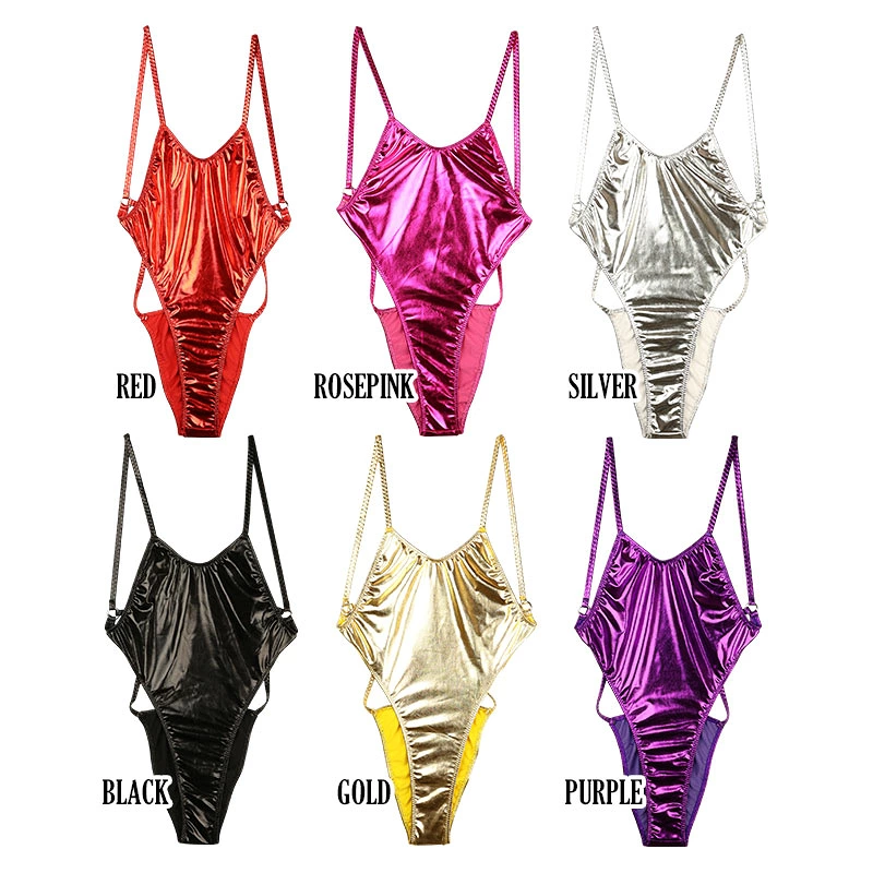 キラキラと艶やかに輝くメタリック生地を使用。伸縮性に優れ、肌にしっとりとなじむヌメリ感のある滑らかな表面が特徴です。大胆に背中を露出させたセクシーなレオタードコスチュームで、光沢が動くたびに美しく反射し、存在感を際立たせます。伸びの良い素材が身体のラインにフィットし、動きやすさと魅力的なシルエットを両立。特別なシーンを華やかに彩る一着です。