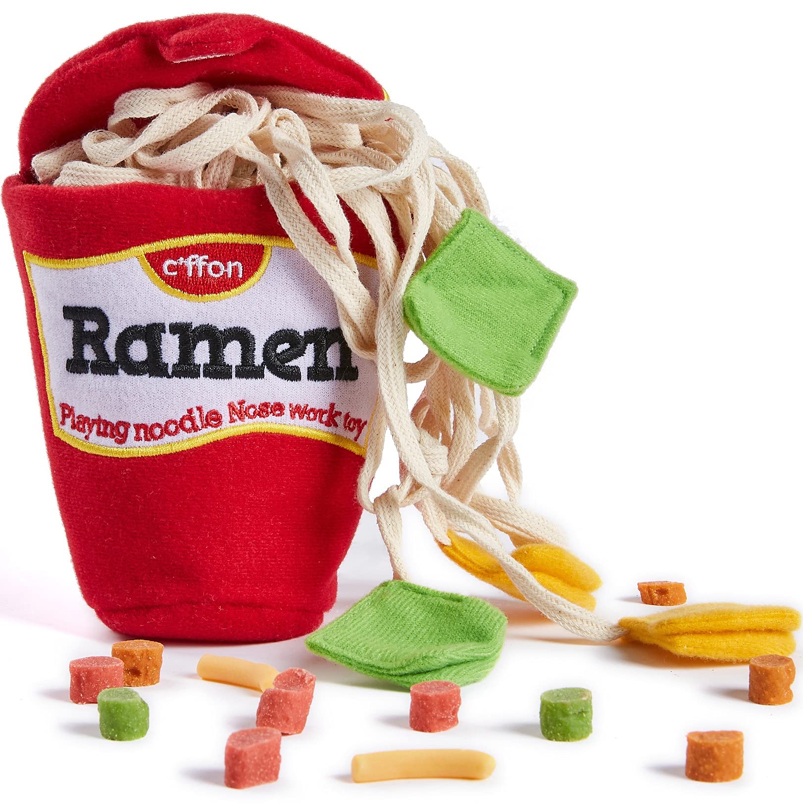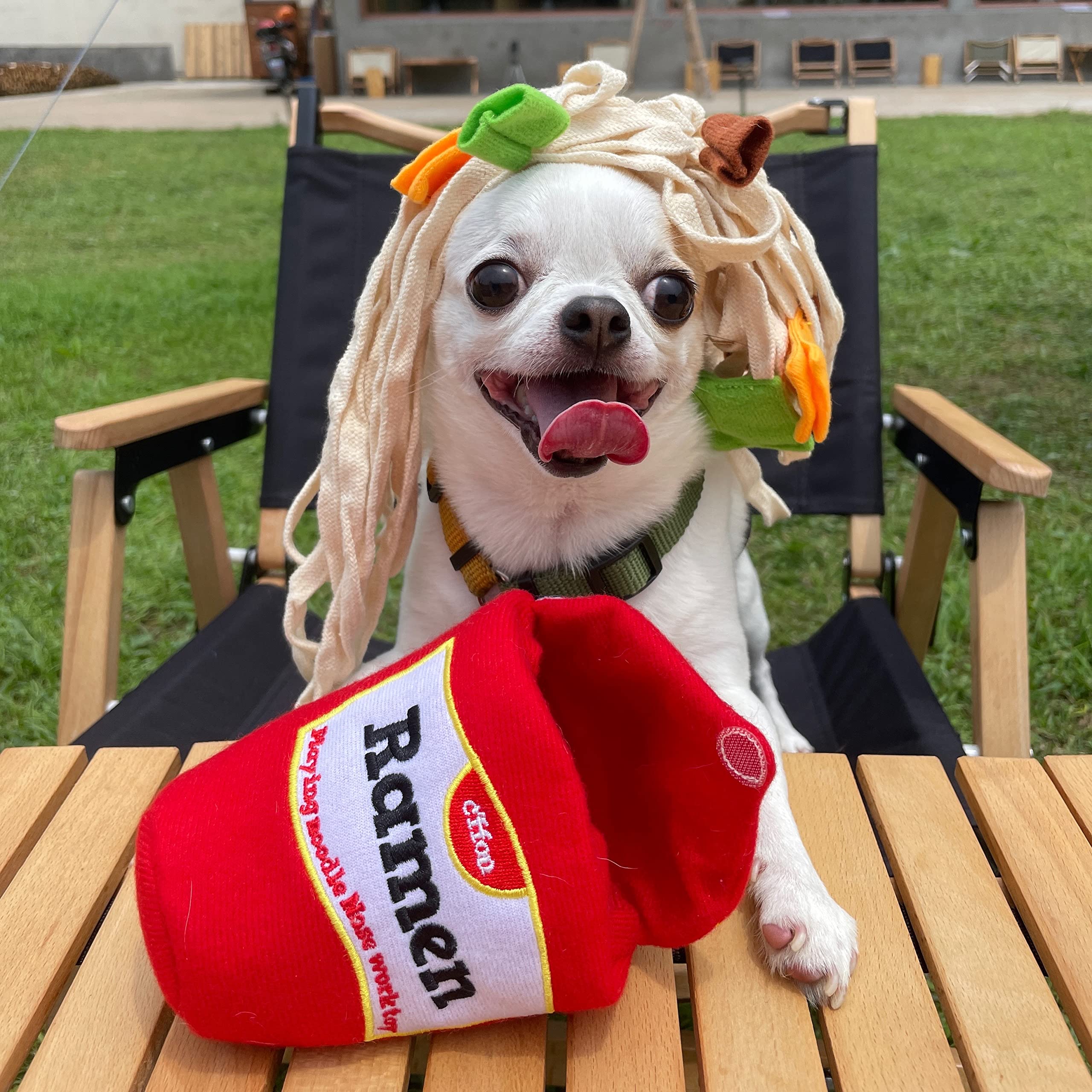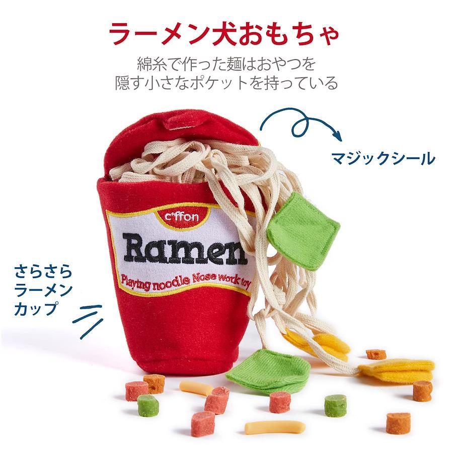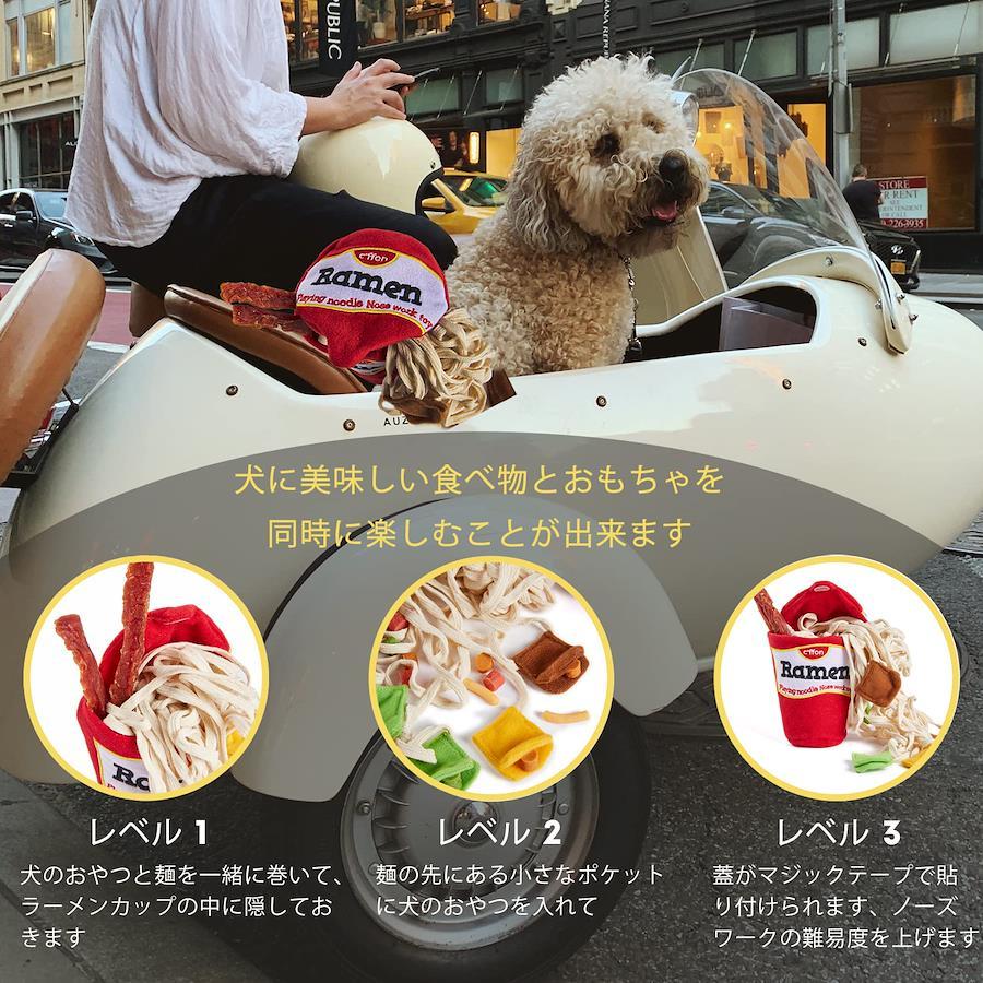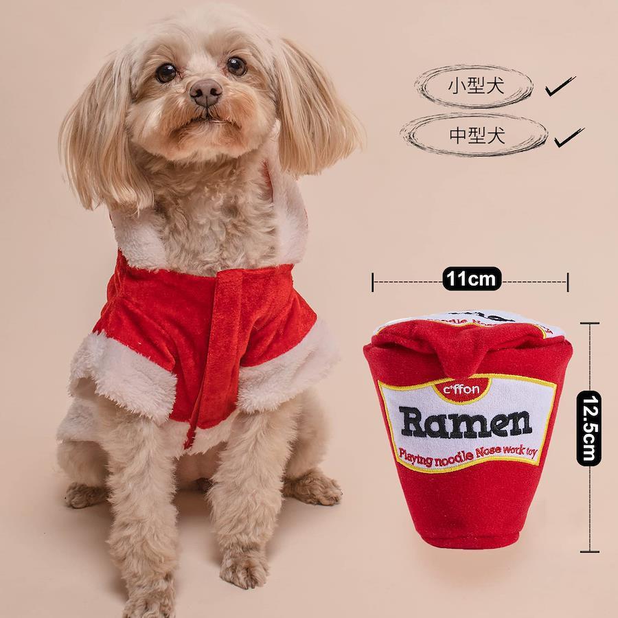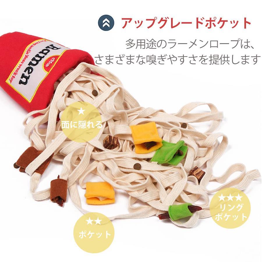 シャカシャカと音が鳴る犬おもちゃ:デザインは実生活のラーメンから由来し、犬のおやつをおもちゃの中に隠して、犬に美味しい食べ物とおもちゃを同時に楽しむことが出来ます。明るい色は犬の注意を引くことが出来、生地も安全で柔かく、犬の遊びには最適です。犬知育・ノーズワークゲーム:カップと中身の麺は分離しており、蓋がマジックテープで貼り付けられます。カップにはシャカシャカと鳴る紙が内蔵されており、犬の遊びを誘います。犬が匂いを嗅いでおもちゃの中に隠されたおやつを見つけることは、彼らのノーズワークを大いに刺激し、そこから大きな満足感を得てIQを開発します。二種類のノーズワーク遊びの方法:①犬のおやつと麺を一緒に巻いて、ラーメンカップの中に隠しておきます。②麺の先にある小さなポケットに犬のおやつを入れて、ノーズワークの難易度を上げます。小・中型犬適用:このラーメン犬知育おもちゃのサイズは11 × 12.5 × 8cmで、小・中型犬適用です。当該知育おもちゃは犬のストレスの減少と退屈の解消には助けます。