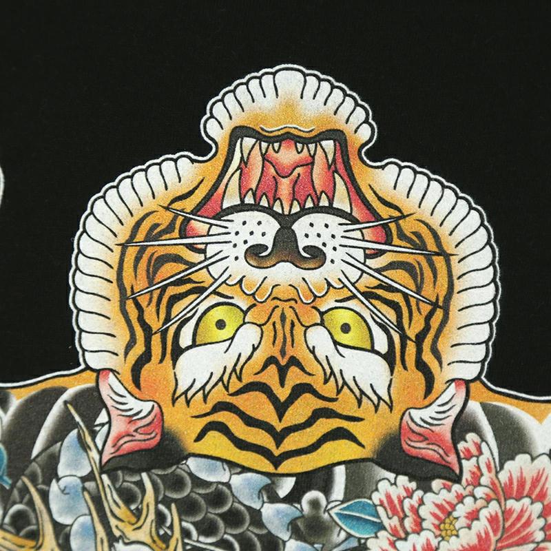 バックプリントはインクジェットプリントで、カラフルな配色で表現。圧倒的な絵力でインパクトのあるデザインに仕上がりました。