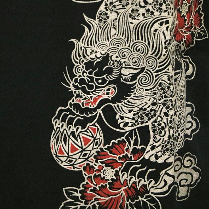 日本に伝わる神獣の唐獅子をフロントとバックに大胆に大きく描き、