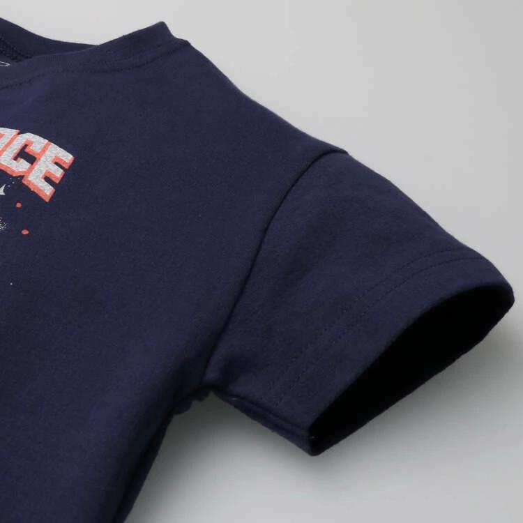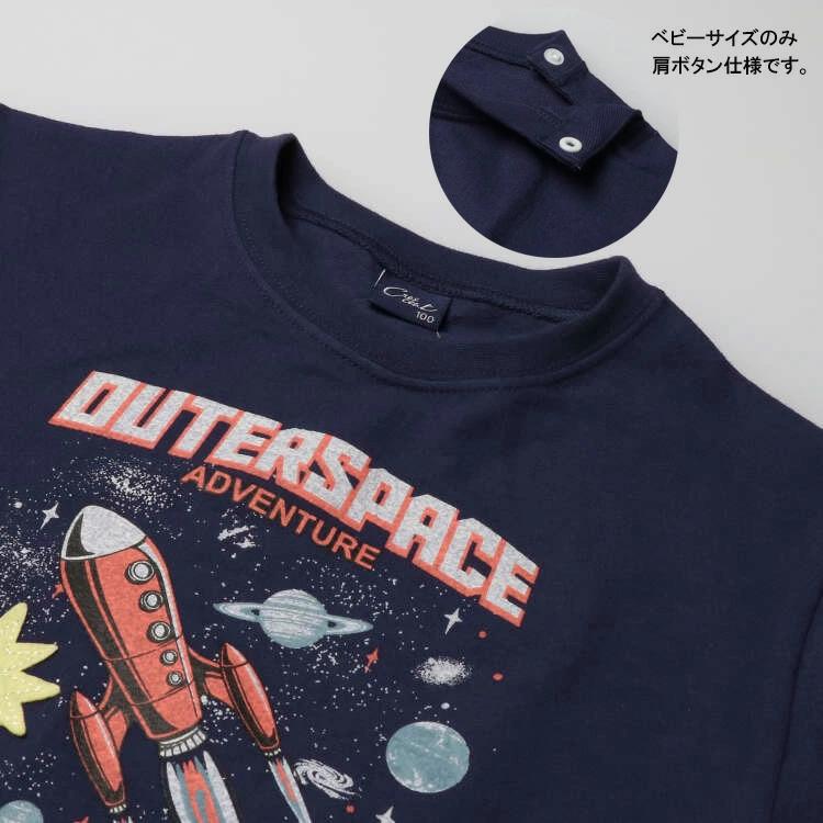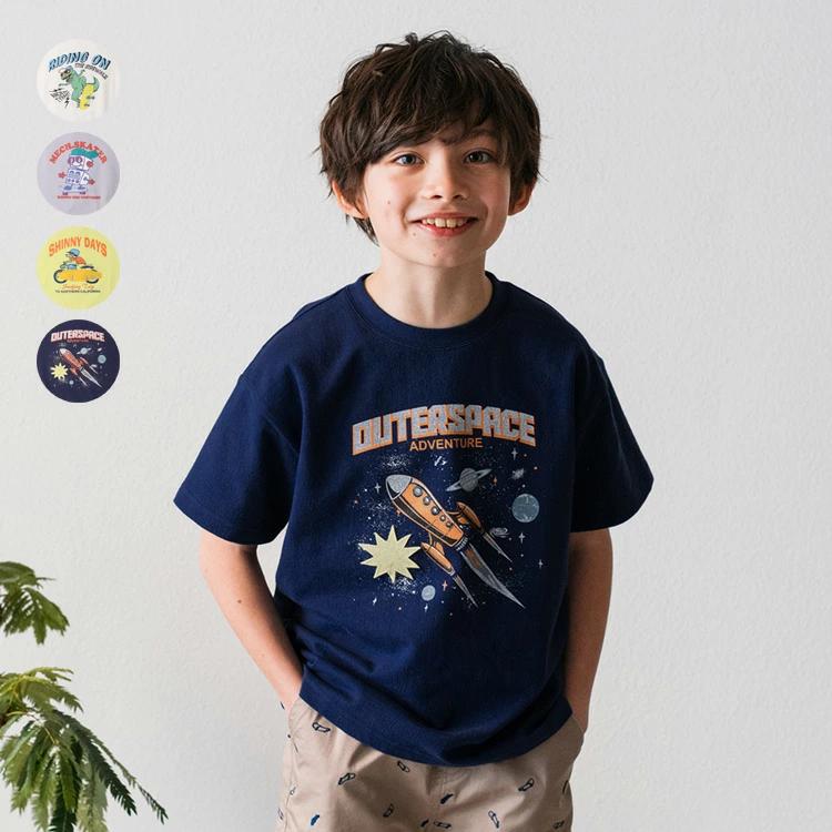 キャラクタープリントにアップリケをプラスしたグラフィックのバリエーションが楽しい半袖Tシャツ。コンはロケット、オフホワイトは恐竜、イエローはサーフバイク、ラベンダーはロボット柄です。(80cm/90cmのみ肩ボタン仕様になります。)【アイテム】トップス カジュアル お洒落 オシャレ かっこいい かわいい 可愛い 普段着 デイリーウェア お出かけ着 お外着 お外遊び着 子ども服 こども服 男児 男の子 ボーイズ キッズ ベビーサイズ トドラーサイズ 幼稚園 保育園 小学校 通園 通学 小学生 2024年春夏物新作 丸高衣料 オフホワイト 白色 ラベンダー 薄紫色 イエロー 黄色 コン ネイビー 紺色 クレセント