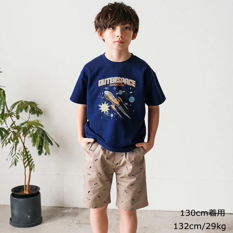 [Children's clothing] crescent (Crescent) Graphic print short sleeve T-shirt with appliqués 80cm - 130cm N32804