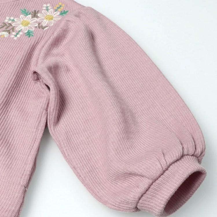 ニット風の生地が高見えするカーディガン。上品なお花の刺繍がポイント!ぽわんとした袖もかわいらしい印象のアイテム。春のお出かけにオススメ!【アイテム】トップス シンプル ガーリー フェミニン カジュアル お洒落 オシャレ かわいい 可愛い 普段着 デイリーウェア お出かけ着 お外着 お外遊び着 子ども こども 女児 女の子 ガールズ キッズ ベビーサイズ トドラーサイズ 幼稚園 保育園 小学校 通園 通学 小学生 2025年春夏物新作 丸高衣料 ロングスリーブ 長袖 オフホワイト 白色 ピンク フラワー クレセント