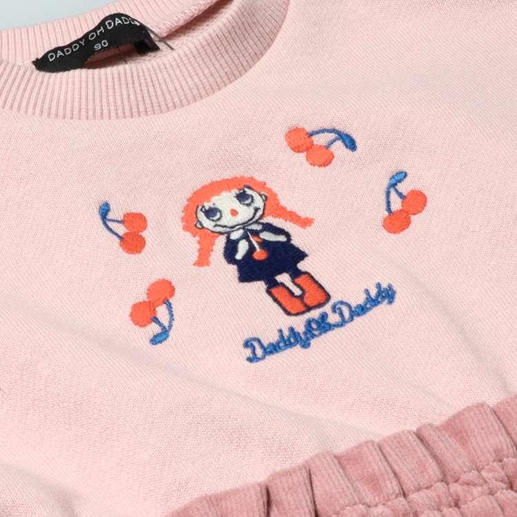 ダディオダディの人気キャラクター「ダディコちゃん」の裏毛ワンピースです。胸元部分のダディコちゃんとチェリーの刺繍がキュート♪ウエスト切り替えになっており、スカート部分はコーデュロイ素材で秋冬らしいデザイン。ストレッチ性のあるコーデュロイなので動きやすく、お出かけ着にもオススメです。90cmのみ肩ボタン仕様です。【アイテム】長袖 ロングスリーブ ワンピース シンプル ガーリー フェミニン カジュアル お洒落 オシャレ かわいい 可愛い 普段着 デイリーウェア お出かけ着 お外着 お外遊び着 子ども こども 女児 女の子 ガールズ キッズ ベビーサイズ トドラーサイズ 幼稚園 保育園 小学校 通園 通学 小学生 2024年秋冬物新作 丸高衣料 ピンク