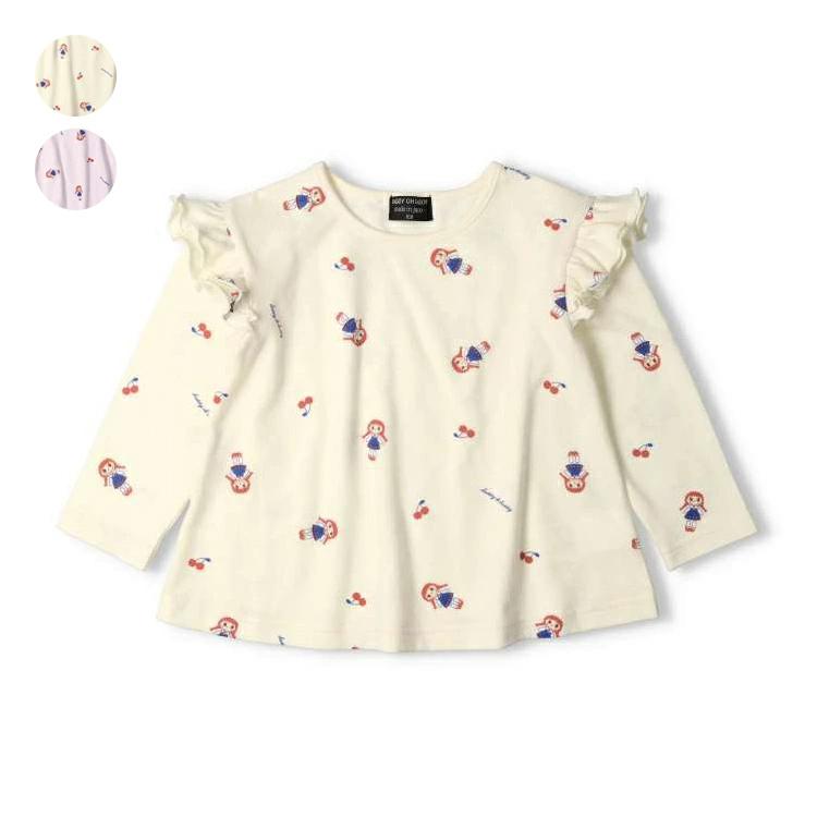 ダディオダディの人気キャラクター「ダディコちゃん」の総柄長袖Tシャツ・ロンTです。【安心の日本製】でギフトやプレゼントにもオススメ!ダディコちゃんとチェリー、ブランドロゴの飛び柄がキュート♪Aラインシルエットに袖のフリルデザインがガーリーで上品な雰囲気です。本体は柔らかくて肌触りの良い天竺(綿)100%生地を使用。季節の変わり目にぴったりなロンTは、デイリーからお出掛けまで幅広く活躍するアイテムです! ☆90cmのみ肩ボタン仕様です。【アイテム】長袖 ロングスリーブ トップス シンプル ガーリー フェミニン カジュアル お洒落 オシャレ かわいい 可愛い 普段着 デイリーウェア お出かけ着 お外着 お外遊び着 子ども こども 女児 女の子 ガールズ キッズ ベビーサイズ トドラーサイズ 幼稚園 保育園 小学校 通園 通学 小学生 2024年秋冬物新作 丸高衣料 オフホワイト 白色 パープル 紫 ラベンダー さくらんぼ サクランボ コットン100% 綿100%