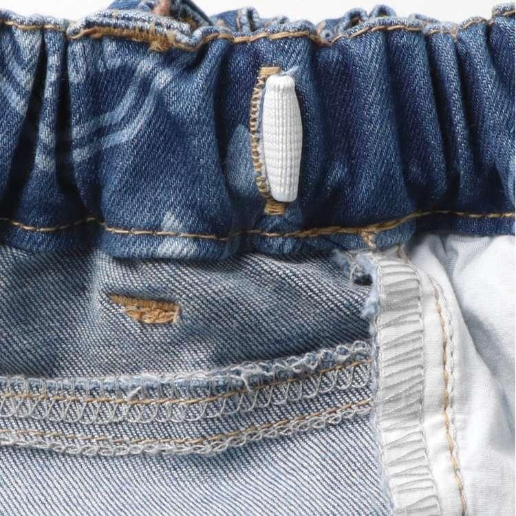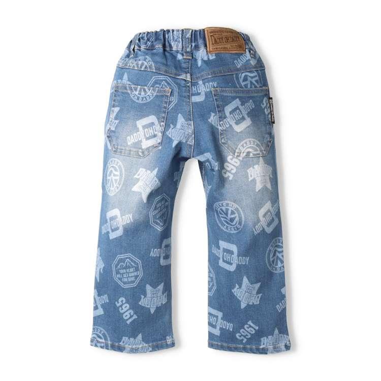 ダディオダディのロゴデザインの総柄がプリントされたストレッチデニムパンツです。柔らかく伸びの良いストレッチデニム生地で、履きやすく動きやすいのが特徴です!厚すぎない10オンスのデニムなので、季節を問わず、幅広いシーズンで活躍します。前身頃と後ろ身頃にはヴィンテージ感が出るようにブラスト加工が施されており、履くだけで雰囲気が出るアイテムです。ゆったりめのストレートシルエットで、カジュアルに履くことができます。同じデザインのスクールサイズ(140,150,160cm)はV53025になります。【アイテム】シンプル ベーシック カジュアル お洒落 オシャレ かっこいい かわいい 可愛い 普段着 お外着 お外遊び着 デイリーウェア お出かけ着 ロング丈 長丈 長ズボン フル丈 ボトムス 子ども こども 男児 男の子 ボーイズ キッズ ベビーサイズ トドラーサイズ 幼稚園 保育園 小学校 通園 通学 小学生 2024年秋冬物新作 丸高衣料 ネイビー コン 紺色 ブルー 青 ダディオダディ