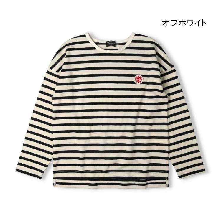 柔らかくて肌触りの良い天竺(綿)100%生地の先染めボーダー長袖Tシャツ・ロンT。【安心の日本製】でギフトやプレゼントにもオススメ!トレンドのオーバーサイズシルエット。着回しのきくボーダーTシャツは、1つあると秋冬コーデに重宝します♪配色がかっこいいブラック×イエロー、ベーシックに使えるオフホワイト×ネイビー、差し色に取り入れたいオレンジ×ベージュの3色展開。胸のブランドロゴワッペンがさり気ないポイントです。カジュアルからお出かけまで幅広く活躍アイテム。同じデザインのトドラーサイズ(90~130cm)はV52800になります。【アイテム】トップス カジュアル お洒落 オシャレ かっこいい かわいい 可愛い 普段着 デイリーウェア お出かけ着 お外着 お外遊び着 子ども服 こども服 男児 男の子 ボーイズ キッズ 小学校 通学 小学生 ジュニアサイズ スクールサイズ 中学校 中学生 高校生 小学校 通園 通学 小学生2024年秋冬物新作 丸高衣料 ロングスリーブ 長袖 ロゴプリント コットン100% 綿100% made in Japan メイドインジャパン 国内生産