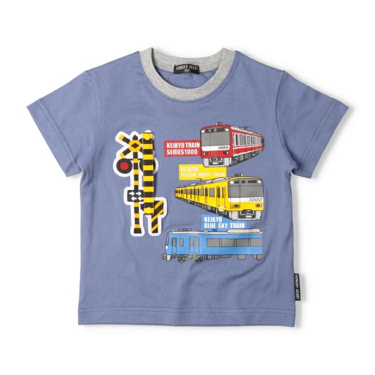 男の子が大好きな電車!京浜急行電鉄株式会社商品化許諾済み商品です。赤い車体の1000形、イエローハッピートレイン、ブルースカイトレインの車体のプリント入り。遮断機部分が動かせる仕掛けが楽しい半袖Tシャツ。踏切好きにもオススメな1枚。【アイテム】トップス カジュアル お洒落 オシャレ かっこいい かわいい 可愛い 普段着 デイリーウェア お出かけ着 お外遊び着 子ども こども 男児 男の子 ボーイズ キッズ ベビーサイズ トドラーサイズ 幼稚園 保育園 小学校 通園 通学 小学生 2025年春夏物新作 丸高衣料 鉄道 子鉄 車両 電車 電鉄 トレイン パープル 紫色 ライトグリーン 黄緑色 ハングリーハート コットン100% 綿100%